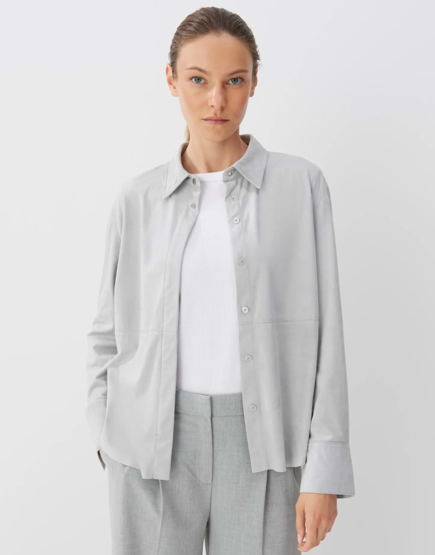 De Blouse In Suedelook Voelt Aangenaam Soepel Aan. De Authentieke Lederlook Wordt Onder Andere Gecreeerd Door De Deelnaden. De Losse Pasvorm Is Comfortabel Om Te Dragen – Gesloten Als Blouse Of Open Als Overshirt.