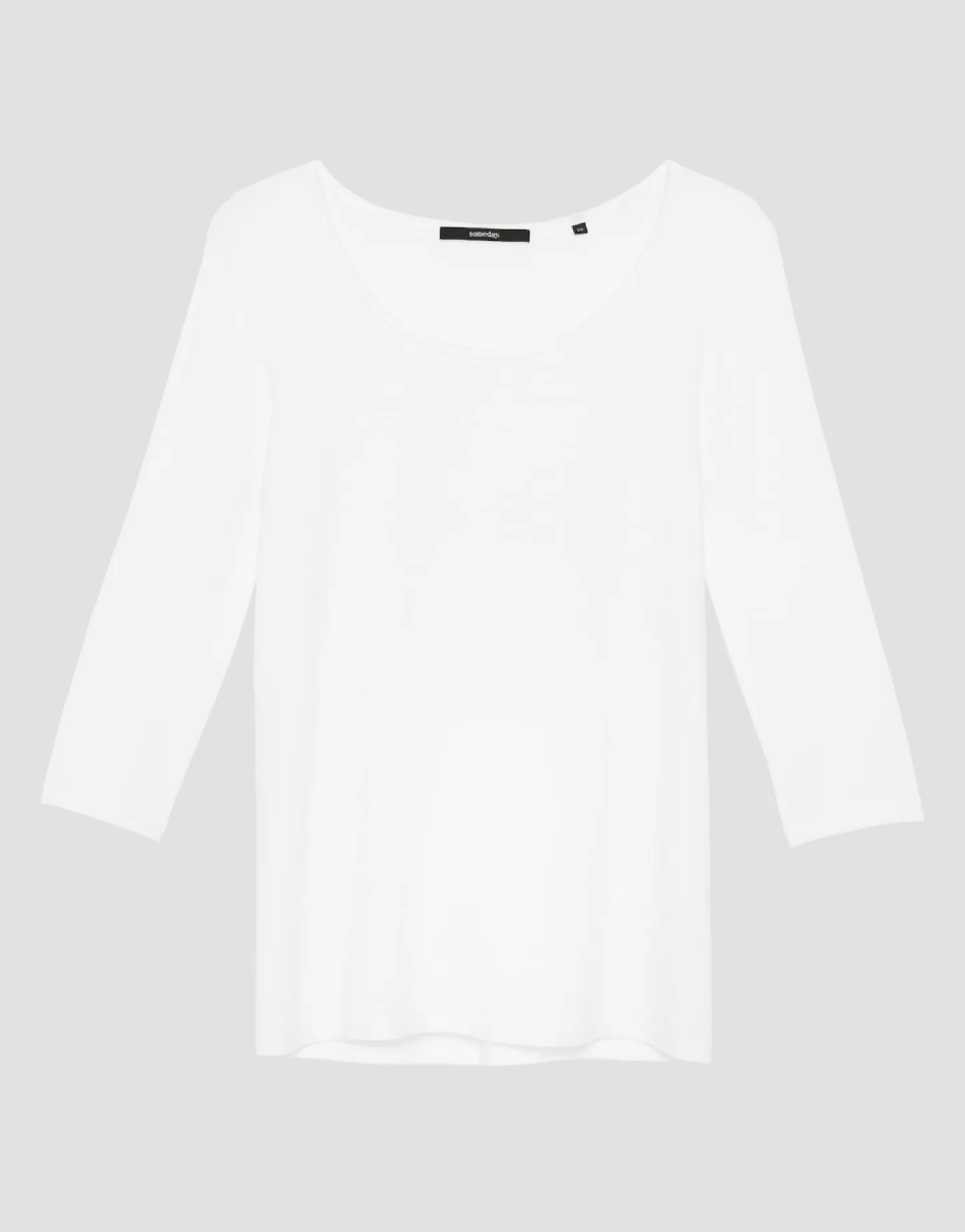 Een Veelzijdige Must-Have: Het Eenvoudige T-Shirt Dient Als Praktische Basis Voor Een Modieuze En Ontspannen Look. De 3/4 Lengte Flatteert De Armen En Maakt Het Veelzijdig Te Combineren. De Lange Overlocknaad Op De Rug Zorgt Voor De Visuele Highligh…