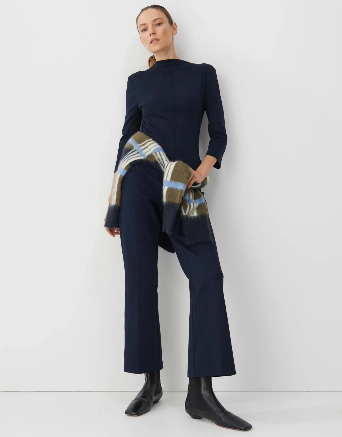 Het T-Shirt Van Duurzame Bci-Katoenmix Overtuigt Met De Voordelen Van Een Basic. Het Slanke Silhouet Wordt Aangevuld Door De Verkorte Mouwen En Een Kleine Opstaande Kraag. Een Lengtenaad Aan De Voorkant Breekt De Pure Look.