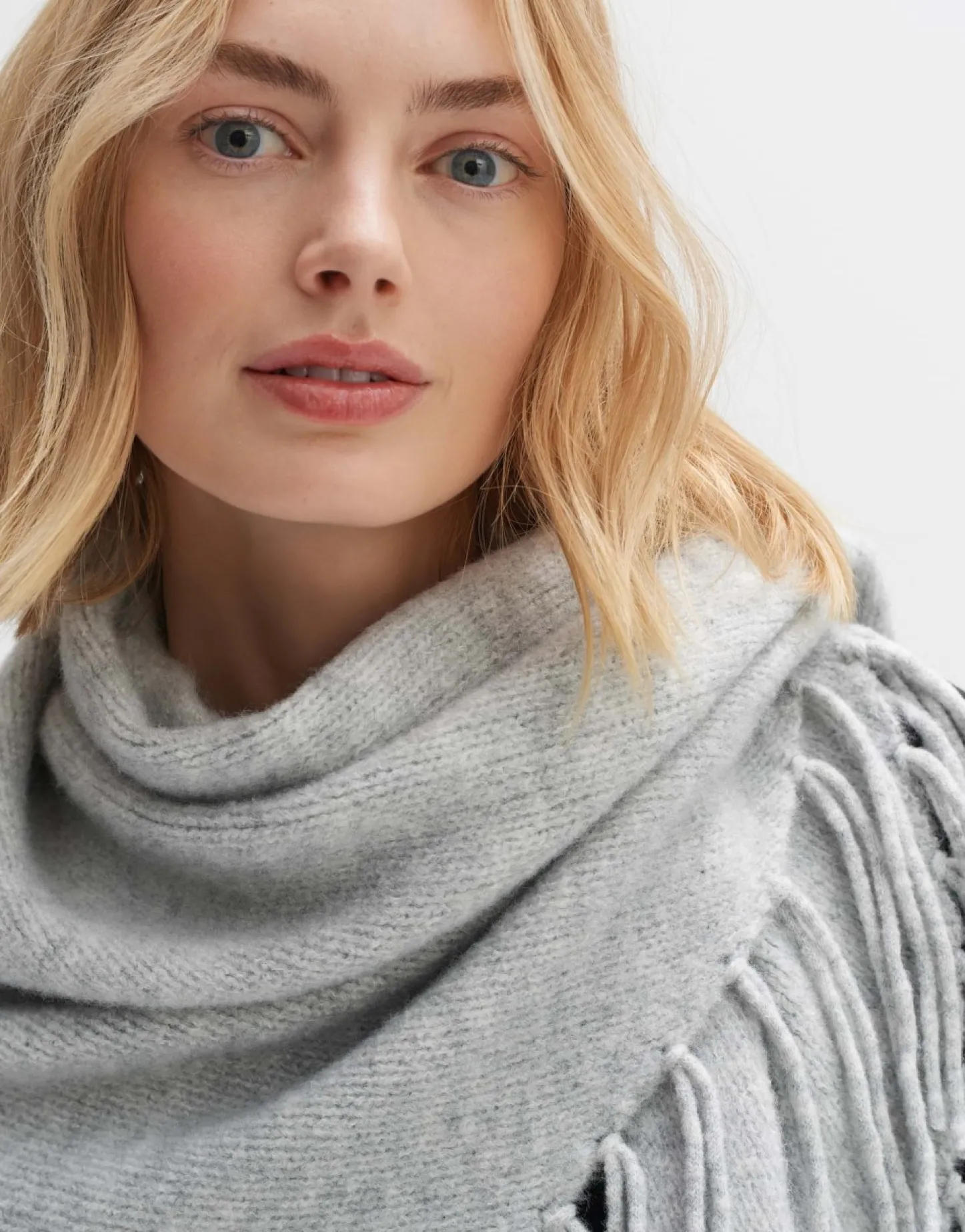 De Sjaal Van Gebreide Stof Wordt Gepresenteerd In Een Mooie, Grote Driehoek En Is Veelzijdig Te Dragen. Het Pure Ontwerp Wordt Ondersteund Door Mooie Details Zoals Het Discrete Opus-Logo En De Franjes Aan De Zoom.