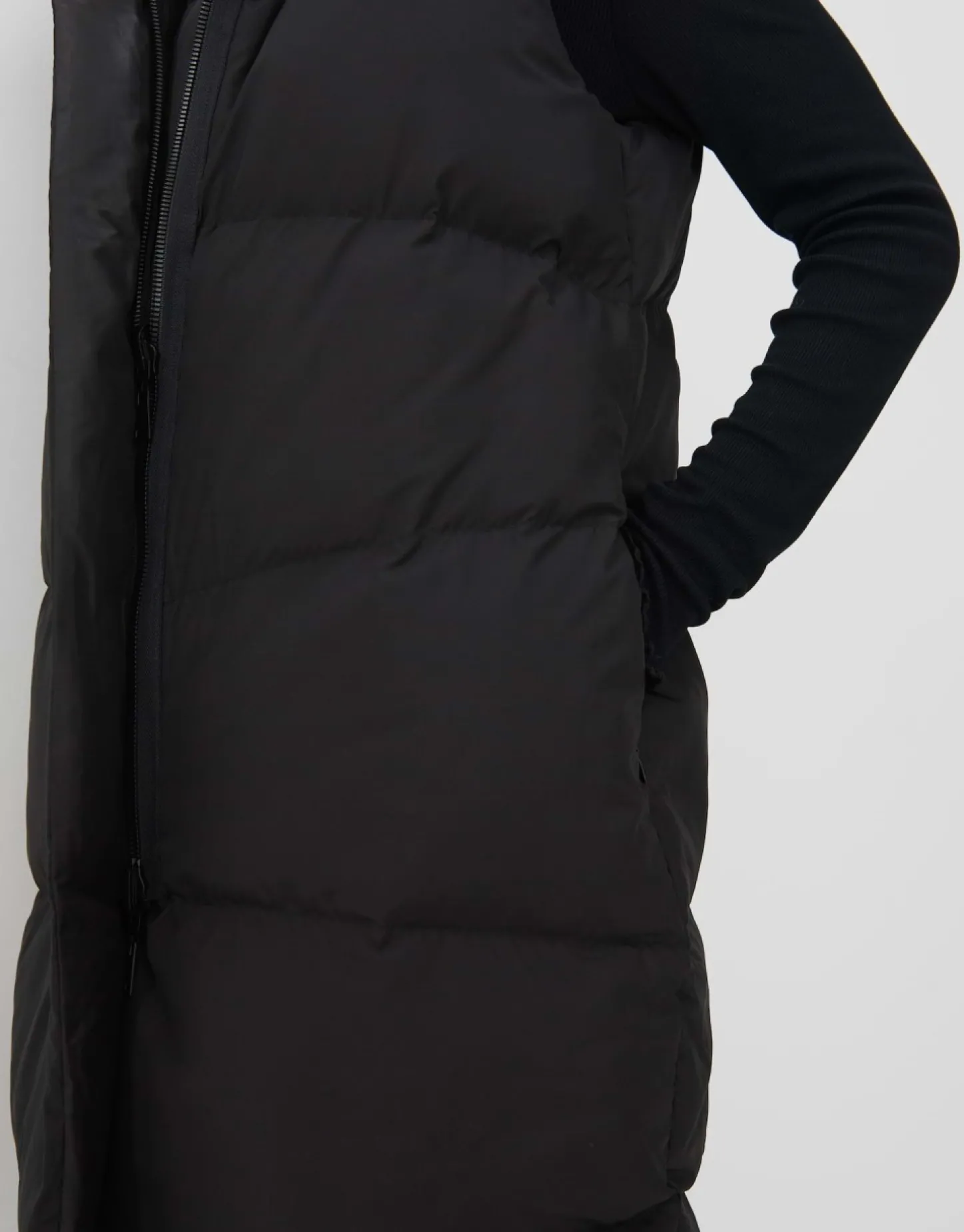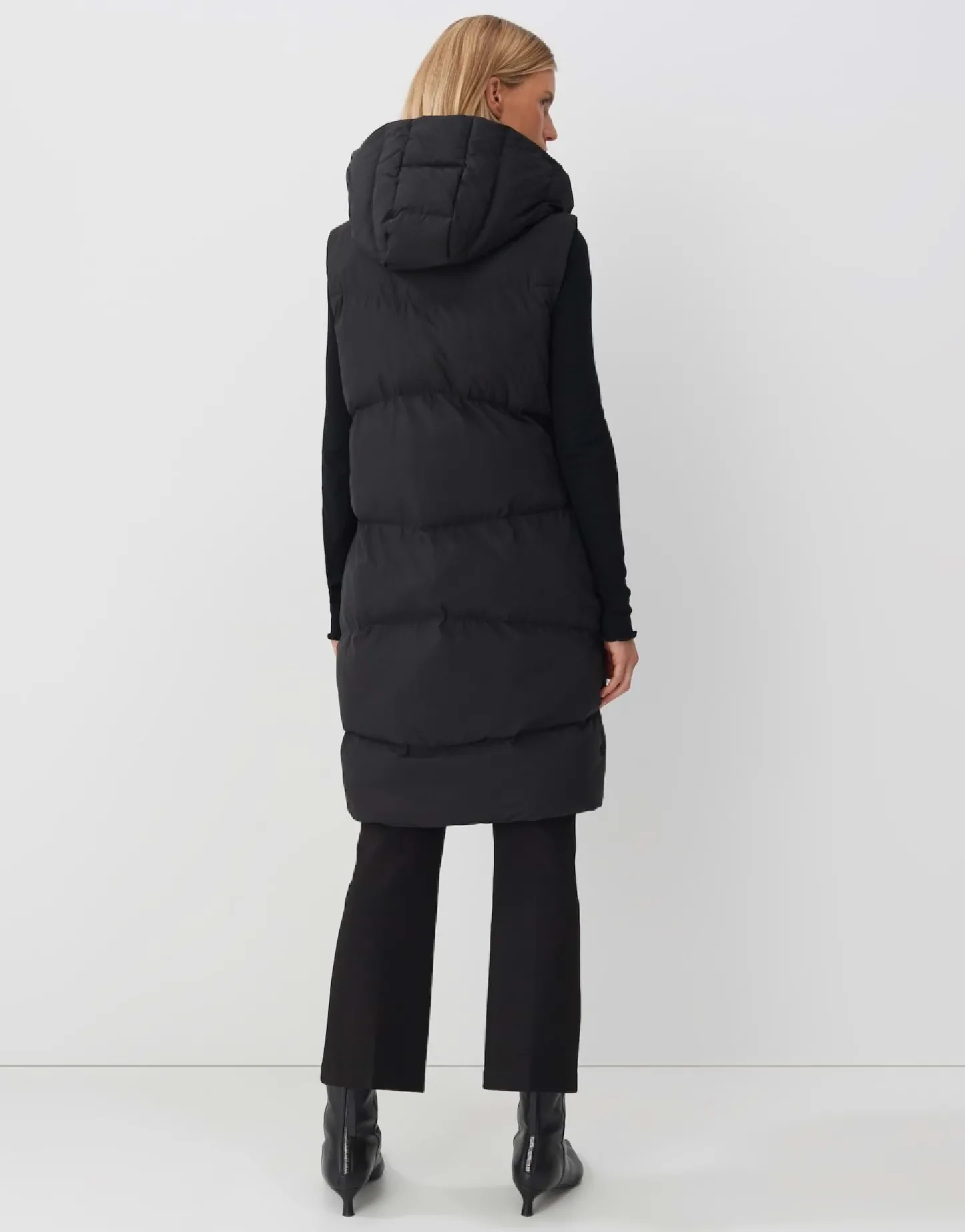 Het Gilet Houdt Je Lekker Warm Met Zijn Volumineuze Doorstiksels En Praktische Capuchon. Het Silhouet Is Lekker Lang En Kan Perfect In Laagjes Worden Gedragen.
