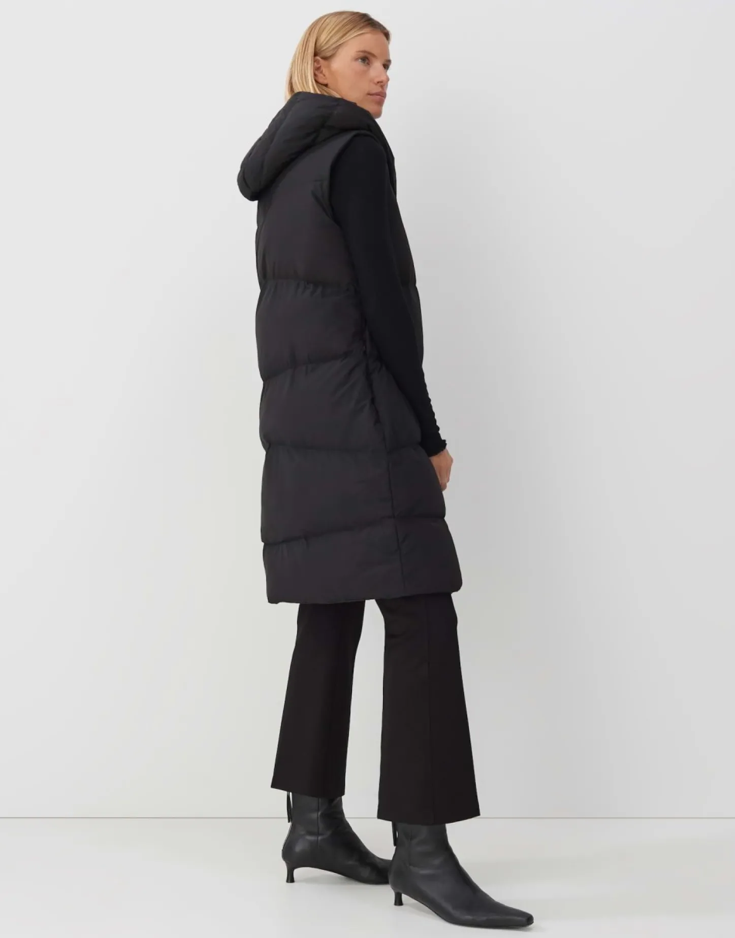 Het Gilet Houdt Je Lekker Warm Met Zijn Volumineuze Doorstiksels En Praktische Capuchon. Het Silhouet Is Lekker Lang En …