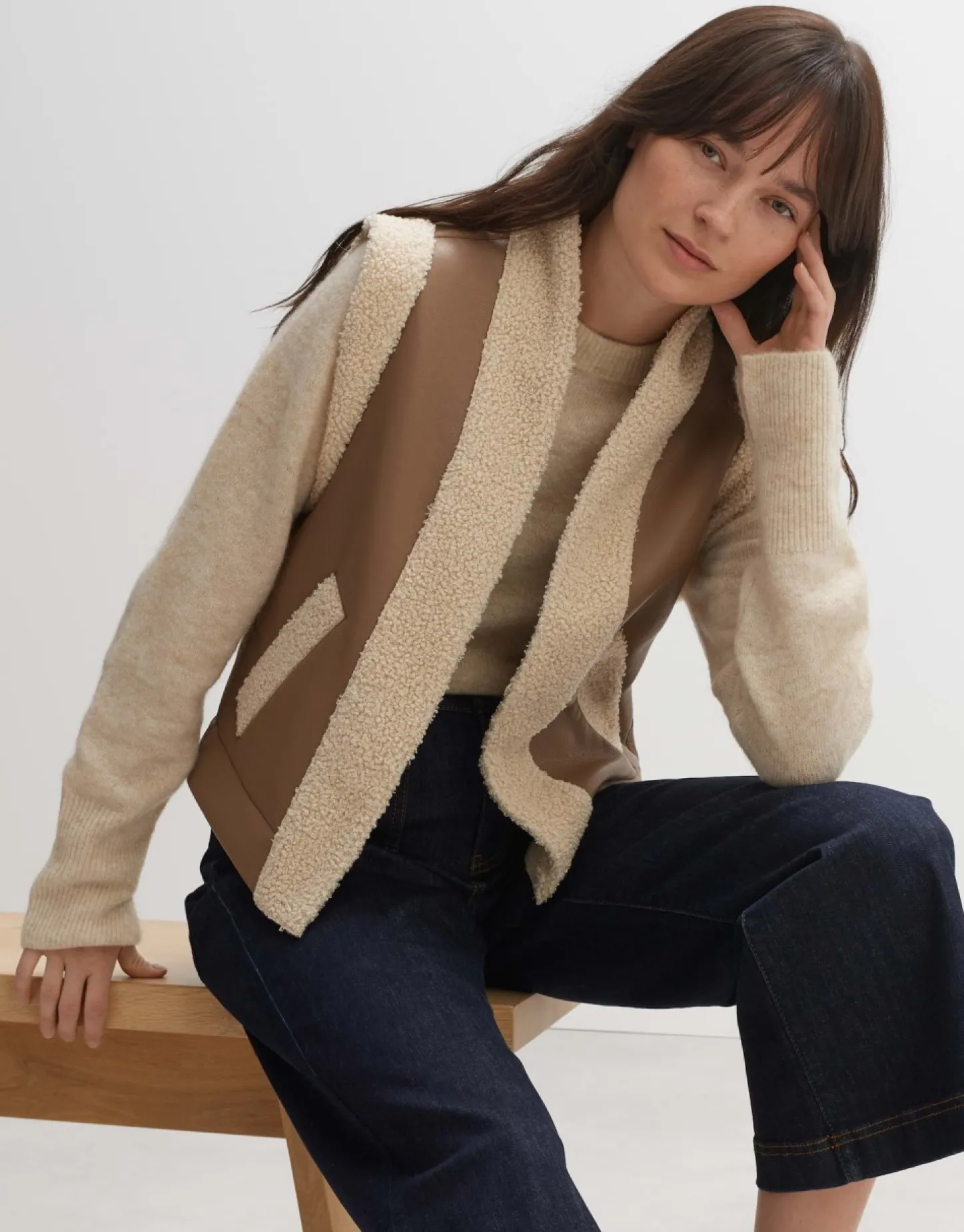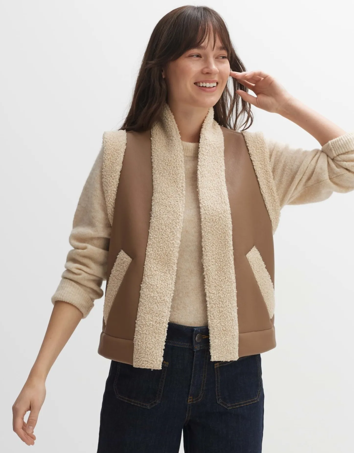 Het Gilet In Coole Lederlook Is Volledig Voorzien Van Pluizig Teddybont Aan De Binnenkant En Creeert Een Casual Retroloo…