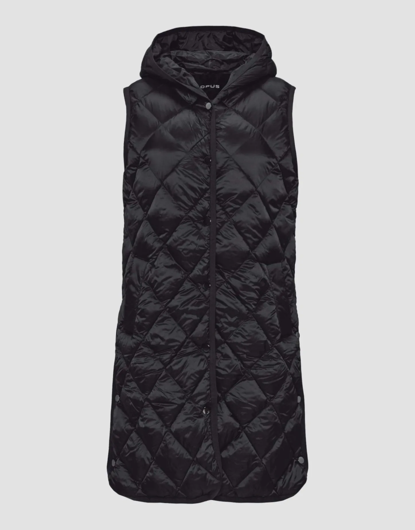Het Gilet Heeft Een Groot Gewatteerd Patroon En Een Lang Silhouet. De Weersbestendige Eigenschappen Maken Het Gilet Een …