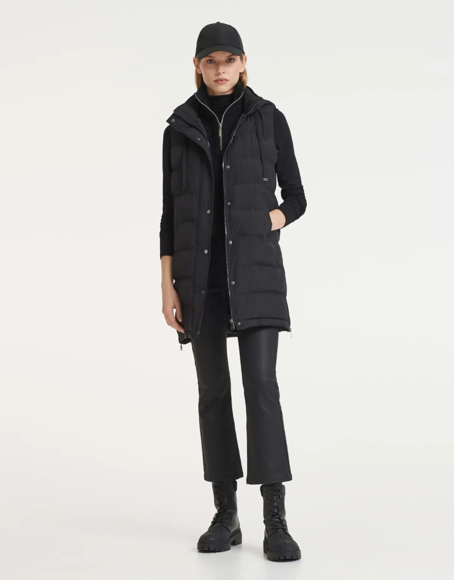 Het Lange Vest Heeft Een Lange Snit En Is Voorzien Van Zijritsen Die Bewegingsvrijheid Garanderen. De Knopenlijst Heeft Zilveren Knopen En De Capuchon Kan Gemakkelijk Worden Aangepast. De Gewatteerde Vulling Combineert Alle Voordelen Van Een Klassie…