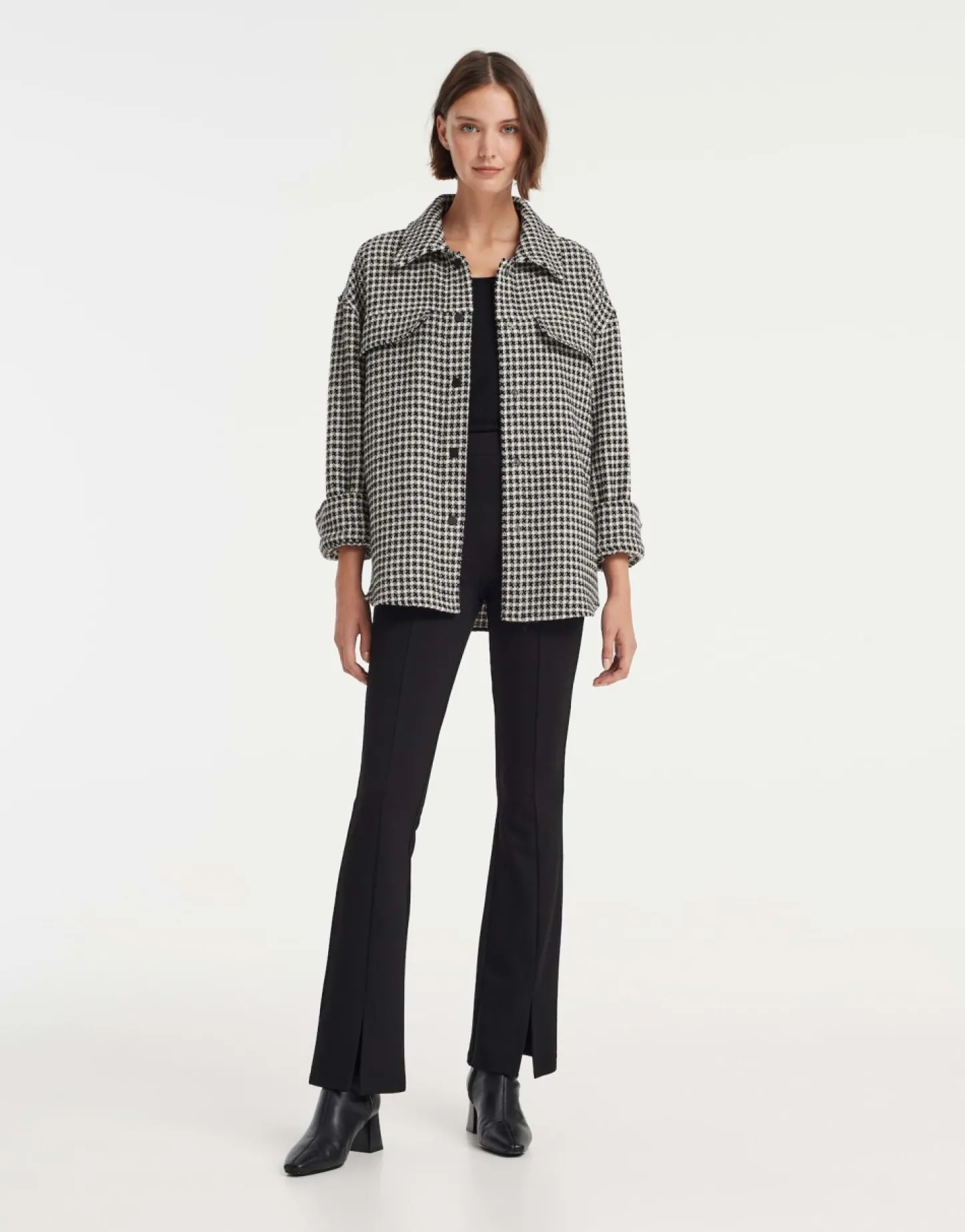 Het Overhemd In Een Katoenmix Maakt Een Cool Statement Met Zijn Dynamische Pepita-Look. De Wolachtige Stof In Combinatie Met Het Oversized Silhouet Zijn Bijzonder Comfortabel Om Te Dragen Bij Koude Temperaturen.