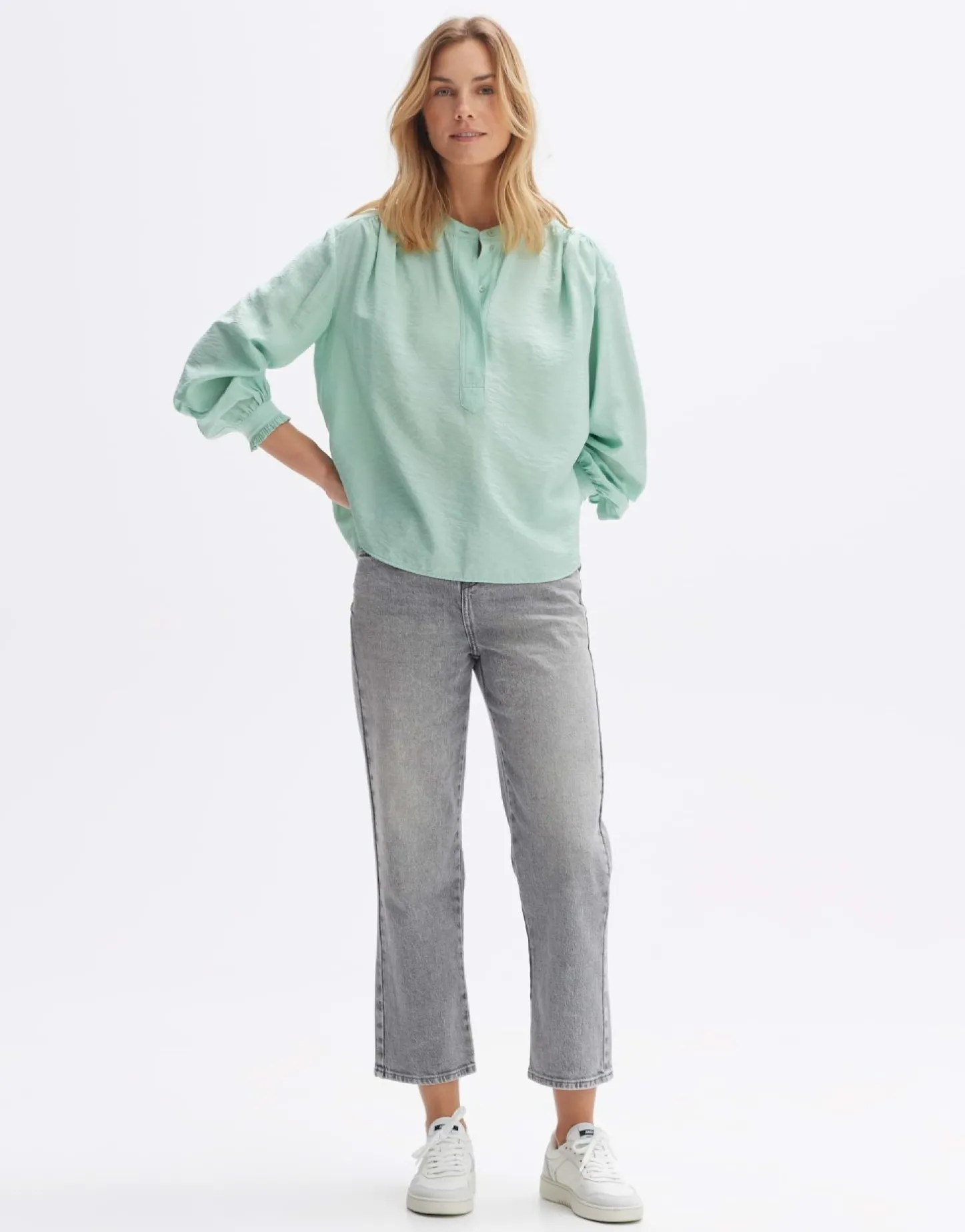 De Blouse Van Een Hoogwaardige Ecovero™ Viscosemix Maakt Indruk Door De Bewegende Oppervlaktestructuur Met Een Licht Crepe-Effect. De Mooie Details Zoals De Plooien Op De Schouders En Het Juk Op De Rug Geven De Blouse Een Vrouwelijk Karakter.