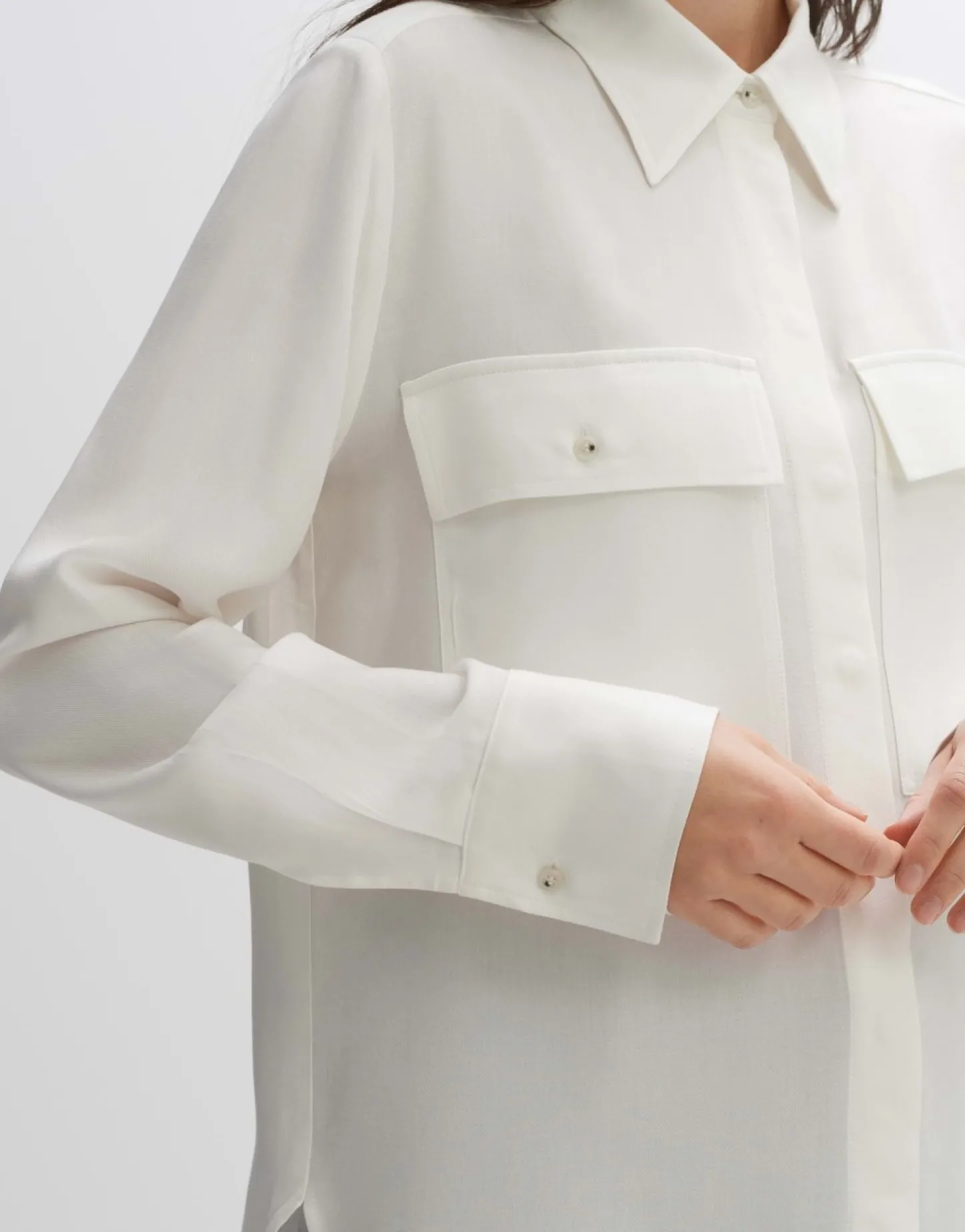 De Blouse Met Lange Mouwen Van Hoogwaardige Viscose Ziet Er Sportief En Elegant Tegelijk Uit Dankzij De Grote Opgestikte Zakken Op De Borst. Het Silhouet Met De Blinde Knoopsluiting Is Casual Gehouden En De Zoom Eindigt Met Een Mooie Ronding.