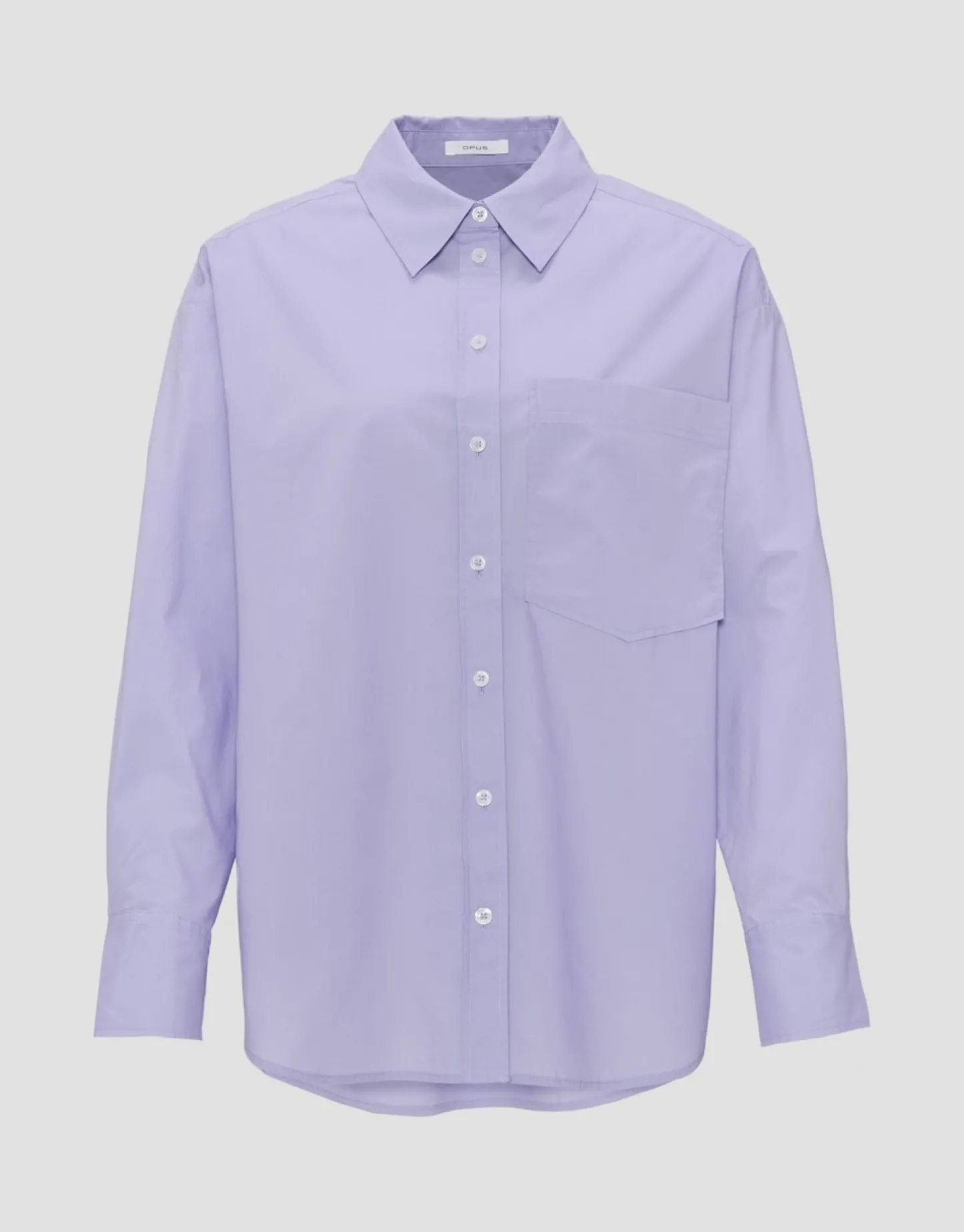De Blouse Met Lange Mouwen Van Bci-Katoen Maakt Indruk Met Zijn Casual Oversized Pasvorm En Contrasterende Knopen In Parelmoerlook. De Zoom Is Licht Afgerond En Achter Iets Langer Dan Voor – Voor Een Moderne Look.