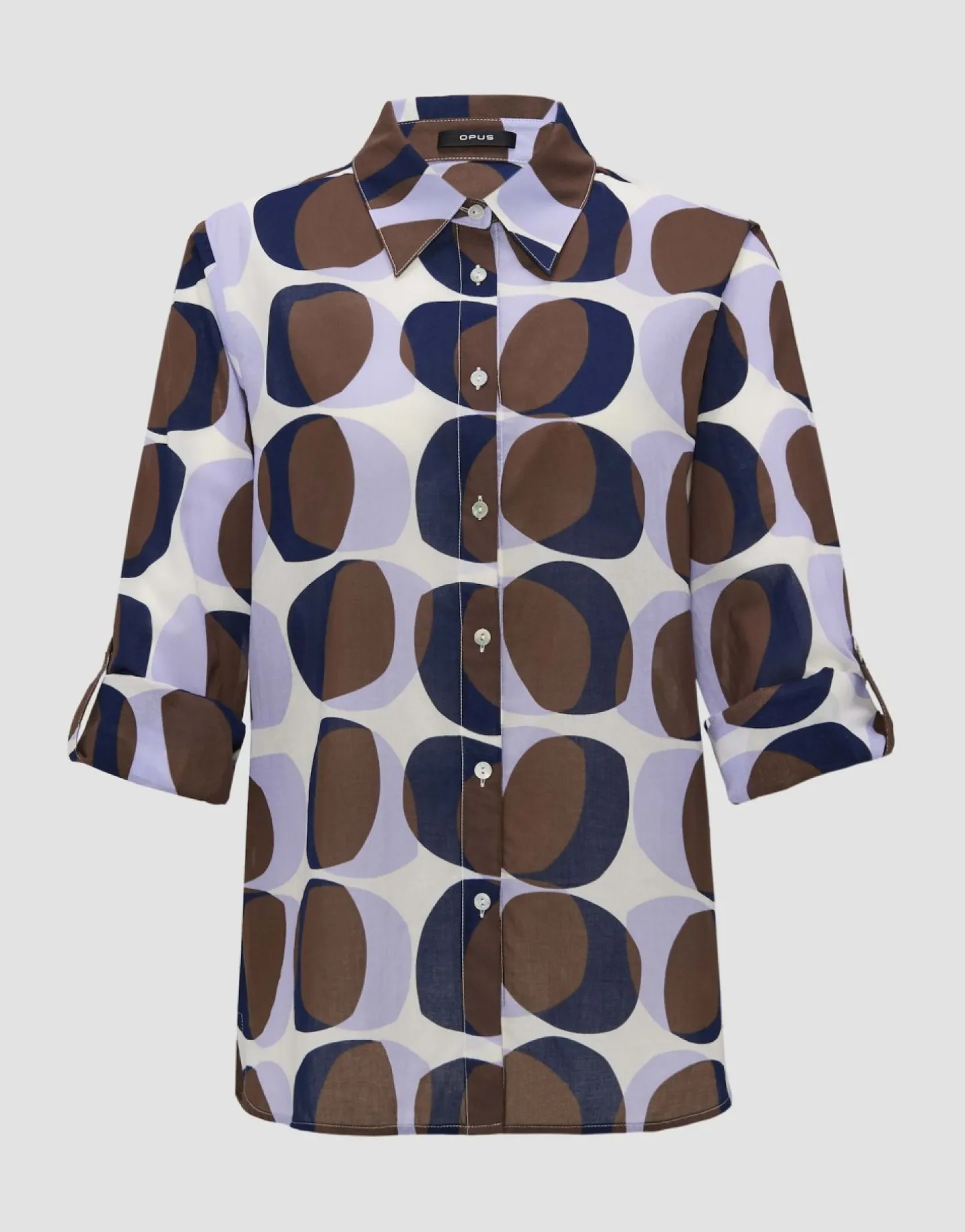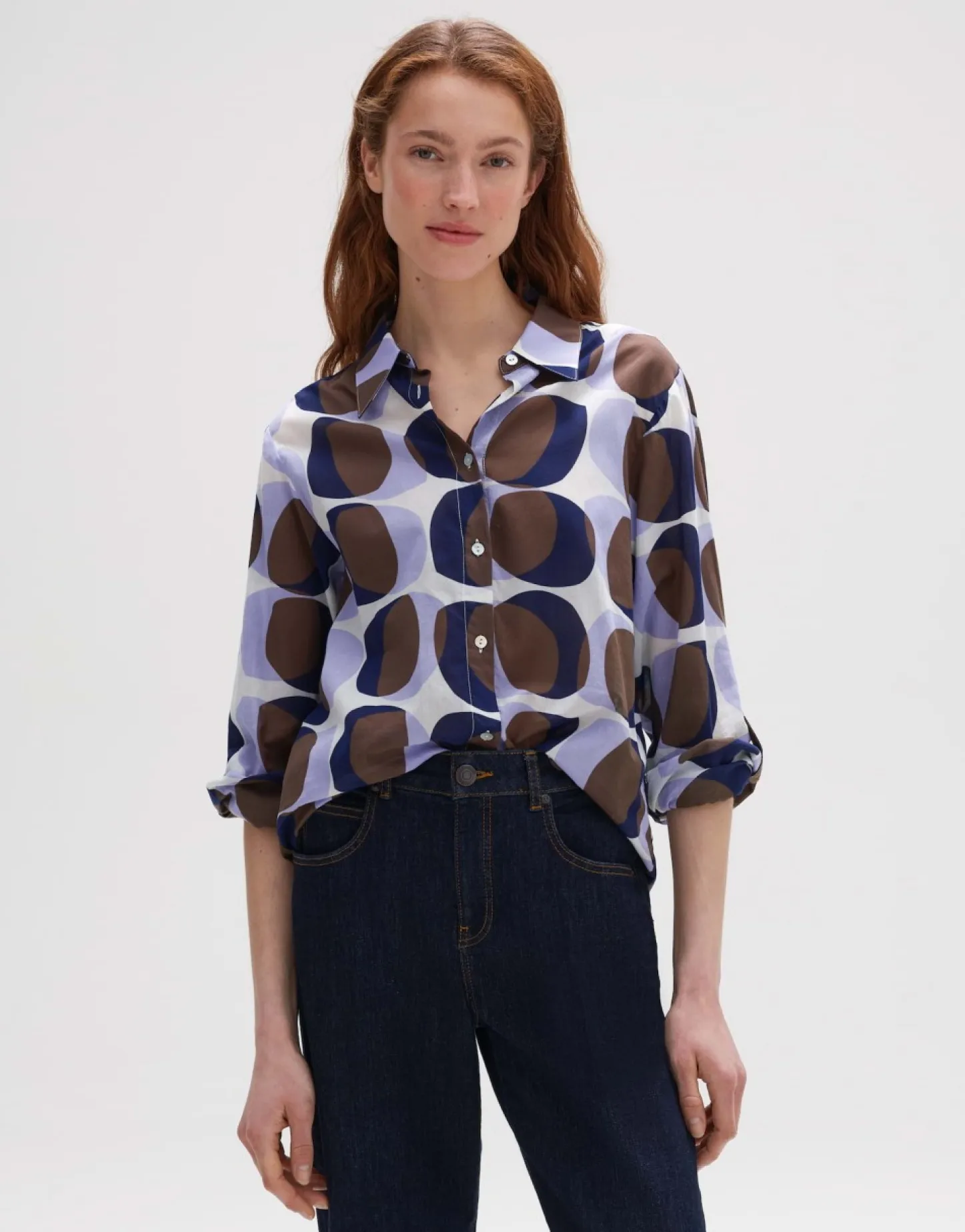 De Printblouse Van Hoogwaardig Bci-Katoen Speelt Met De Nieuwe Innovatieve Artworkprint Over Een Lichte Stof. Klassieke Blousedetails Worden Gecombineerd Met Sportieve Attributen, Zoals De Oprolfunctie Op De Mouw.