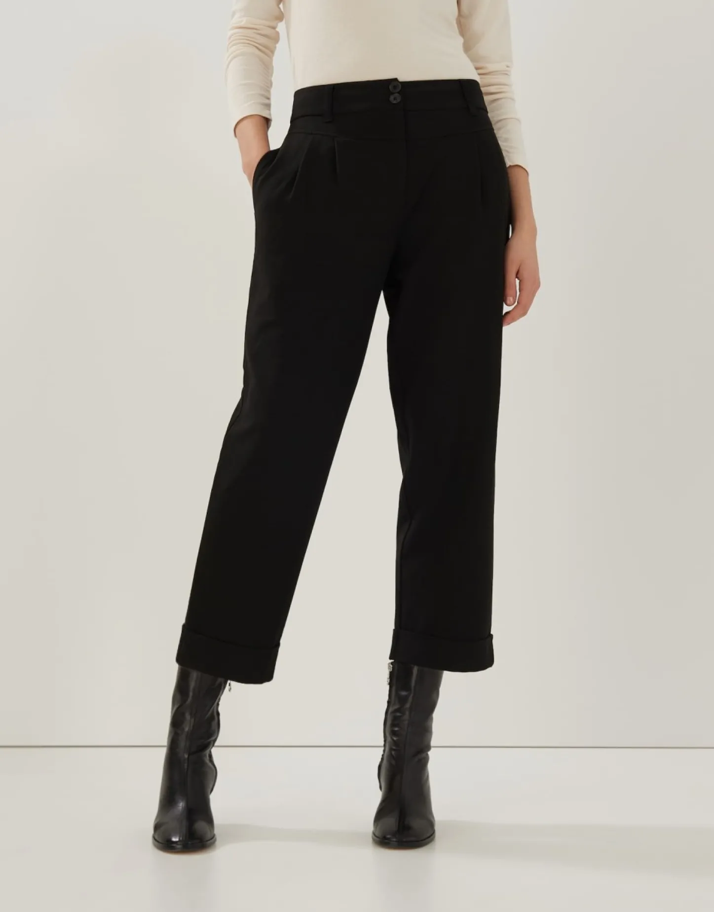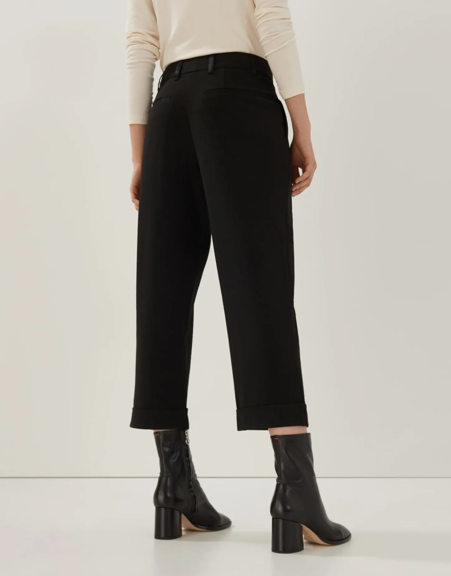 Deze Geplooide Broek, Gemaakt Van Een Gerecyclede Polyestermix, Heeft Een Verkorte, Wijde Pijp Met Een Brede Omslag En Klassieke Plooien. Satijnen Zakken En Riemlussen Zorgen Voor Een Feestelijk Detail.