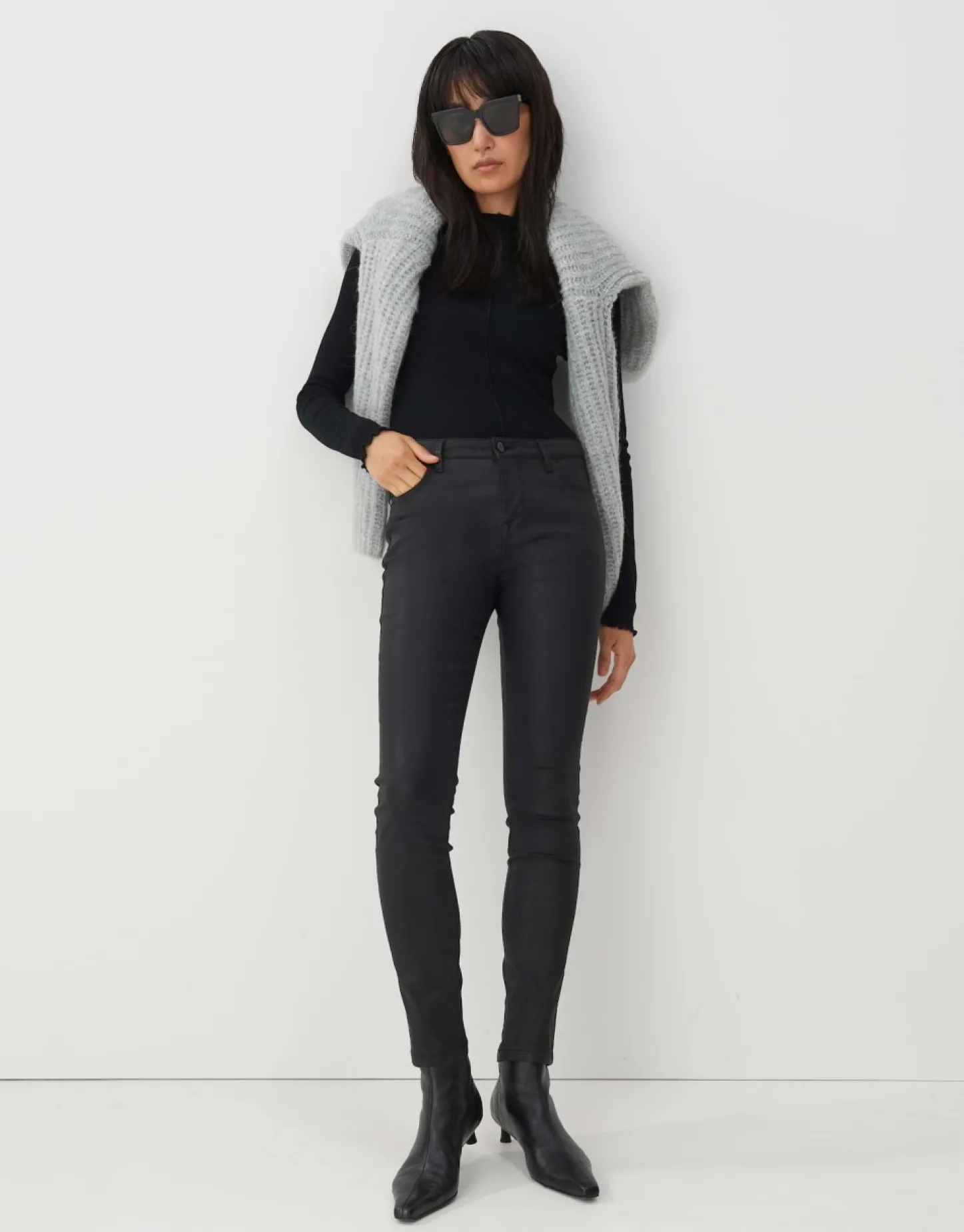 Deze Gecoate Jeans Heeft Een Elegante Coating Die Hem Een Lederlook Geeft. De Elastische Katoenmix Omhelst Het Silhouet …