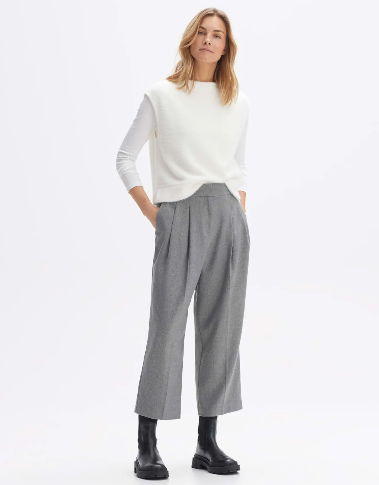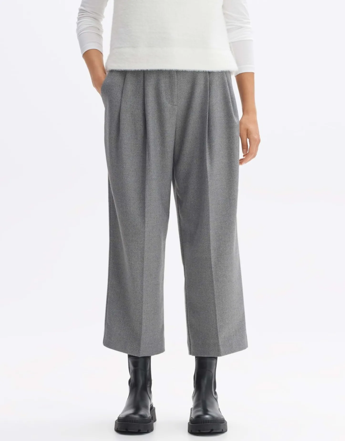 Deze Culotte Is Gemaakt Van Een Zachte Flanellen Stof En Maakt Indruk Met Zijn Tweekleurige Keperstructuur En Comfortabele Pasvorm. De Wijde, Verkorte Pijp Krijgt Een Klassiek Karakter Door De Geintegreerde Plooi En Vouw En Is Perfect Voor Naar Kant…