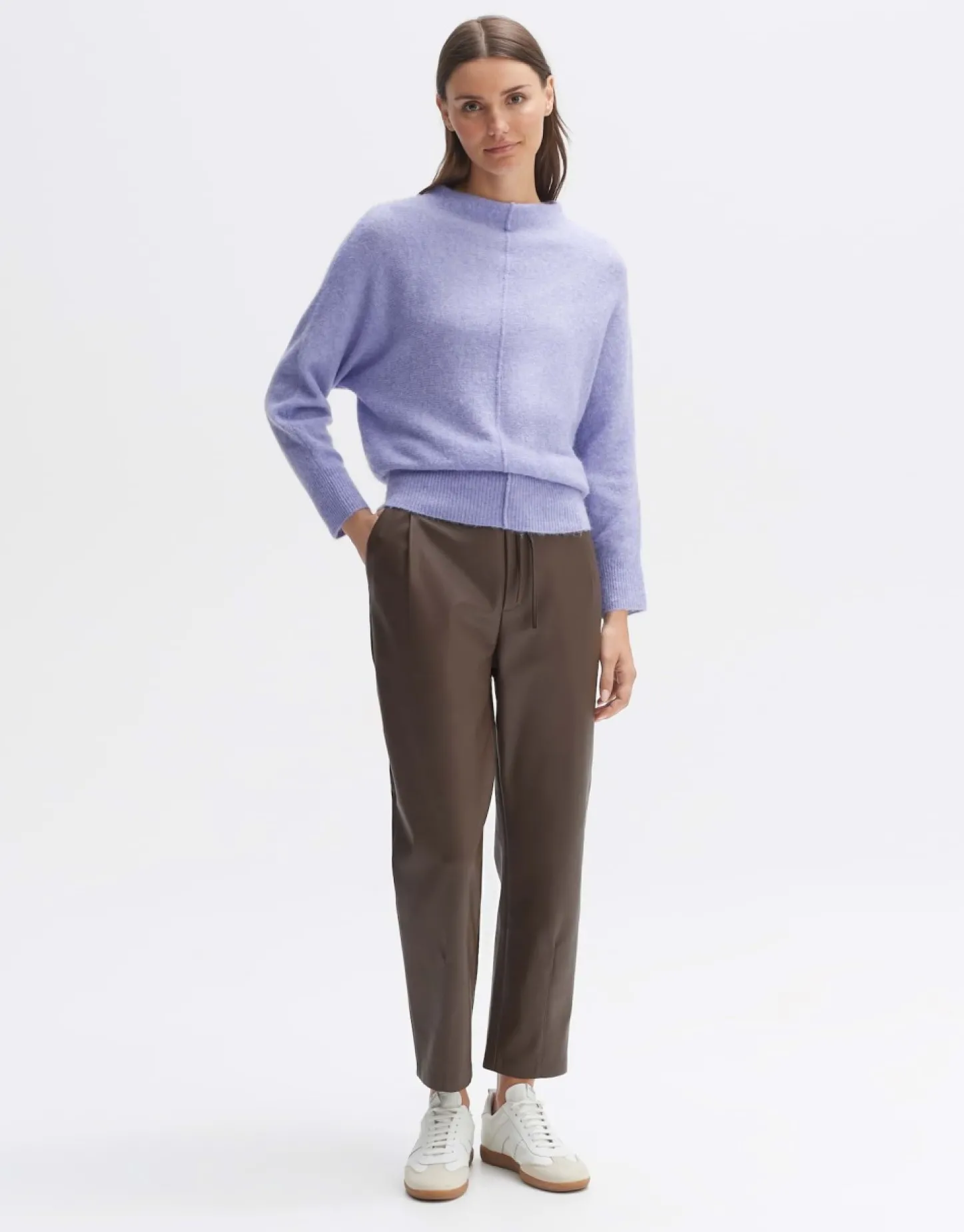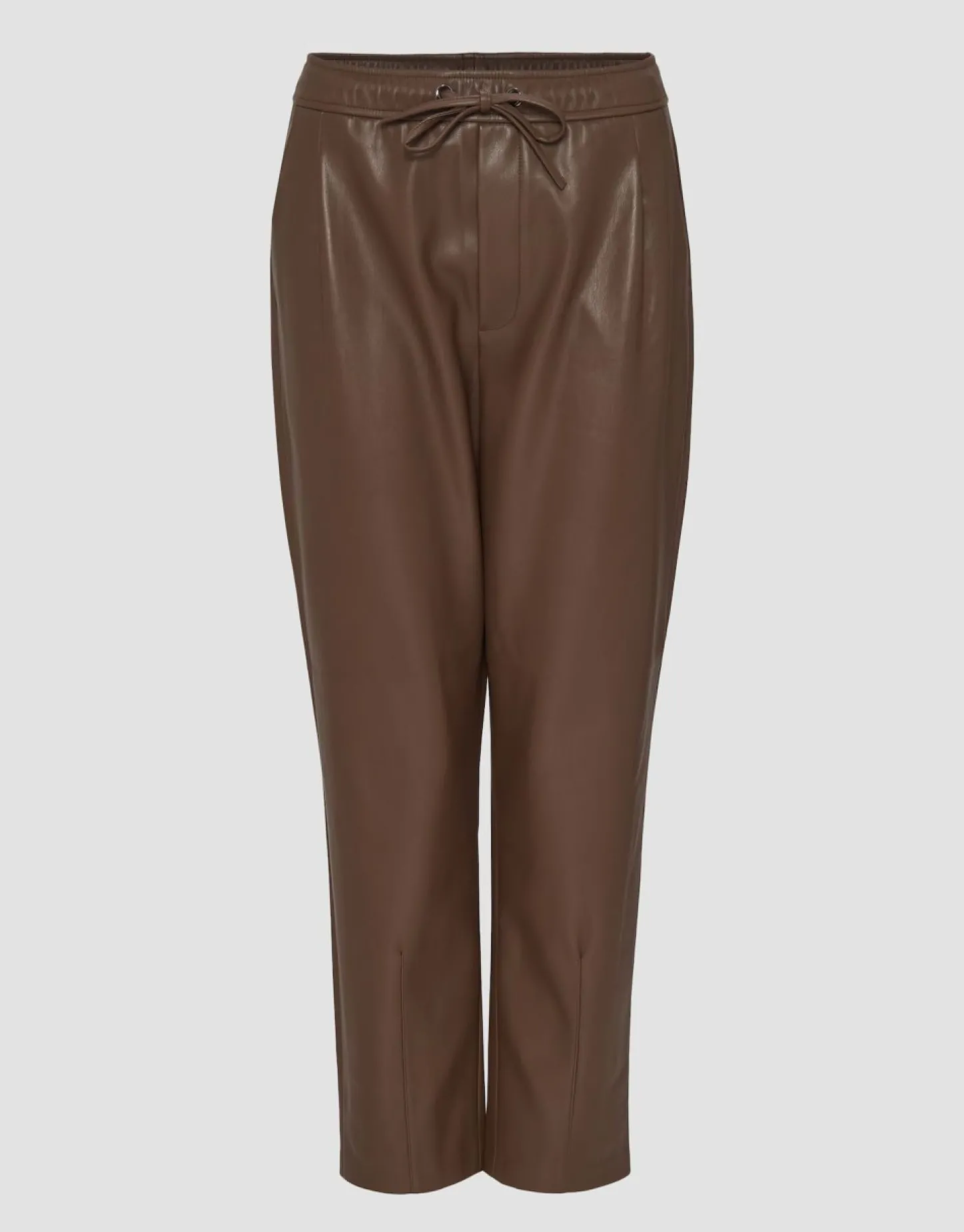 De Stoffen Broek In Coole Lederlook Is Gemaakt In Een Comfortabele Joggerstijl. Door De Elastische Tailleband En De Elastische Stof Zit De Broek Comfortabel. De Pijpen Lopen Naar Beneden Toe Smaller Toe En Hebben Een Kleine Siernaad In Het Midden.