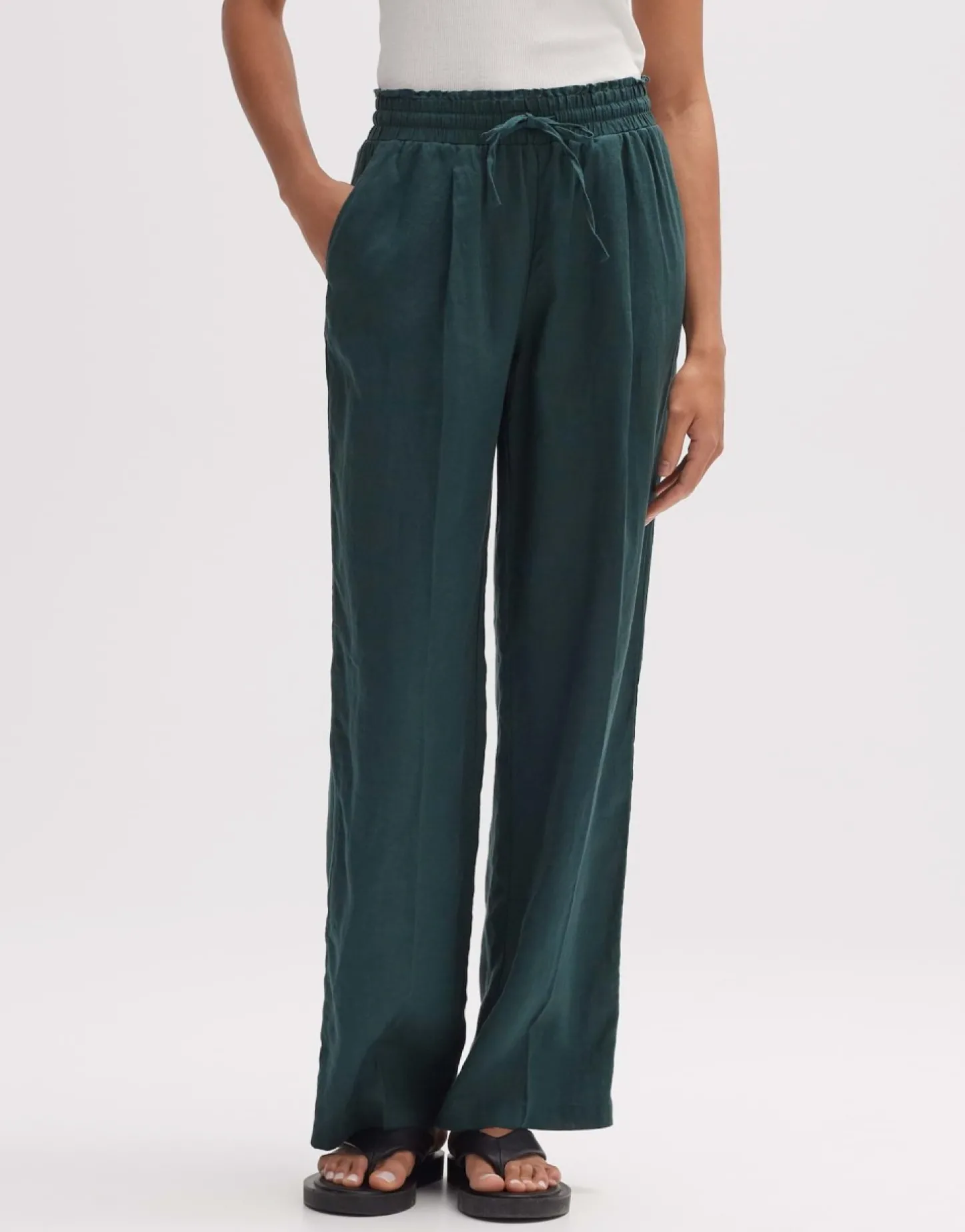 De 100% Linnen Broek Is Een Zomers Statement Piece. De Vloerlange, Wijde Pijpen Zijn Afgewerkt Met Een Elegante Plooi. Het Comfort Wordt Verzekerd Door De Elastische Tailleband Met Een Band Voor Een Flexibele Vetersluiting.