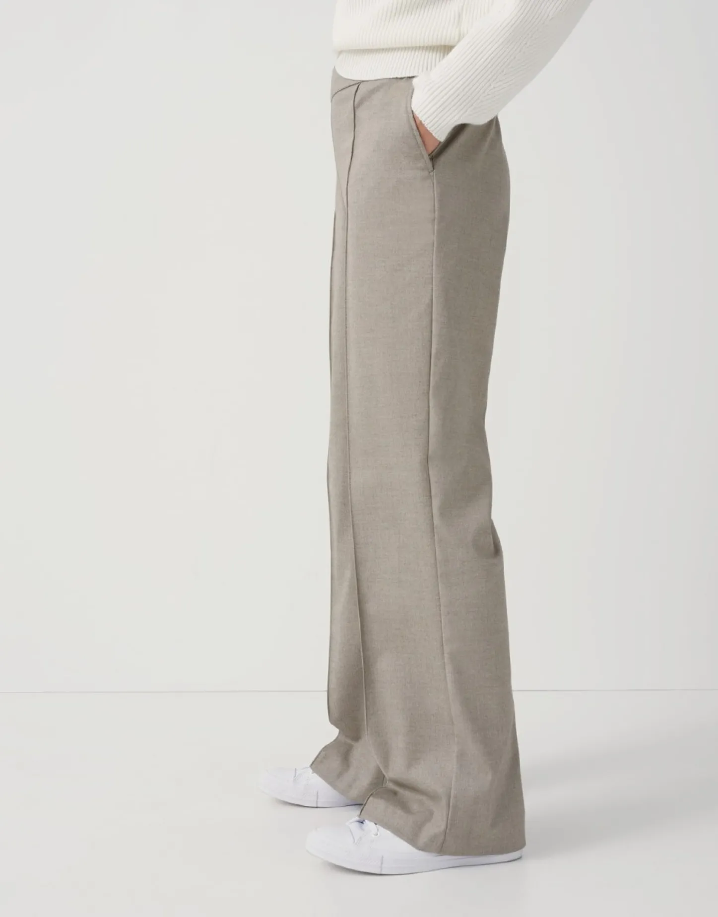 De Pantalon Van Een Hoogwaardige Viscosemix Maakt Indruk Met Een Mooie Peper-Zout-Optiek. De Rechte, Lange Broekspijp Wo…