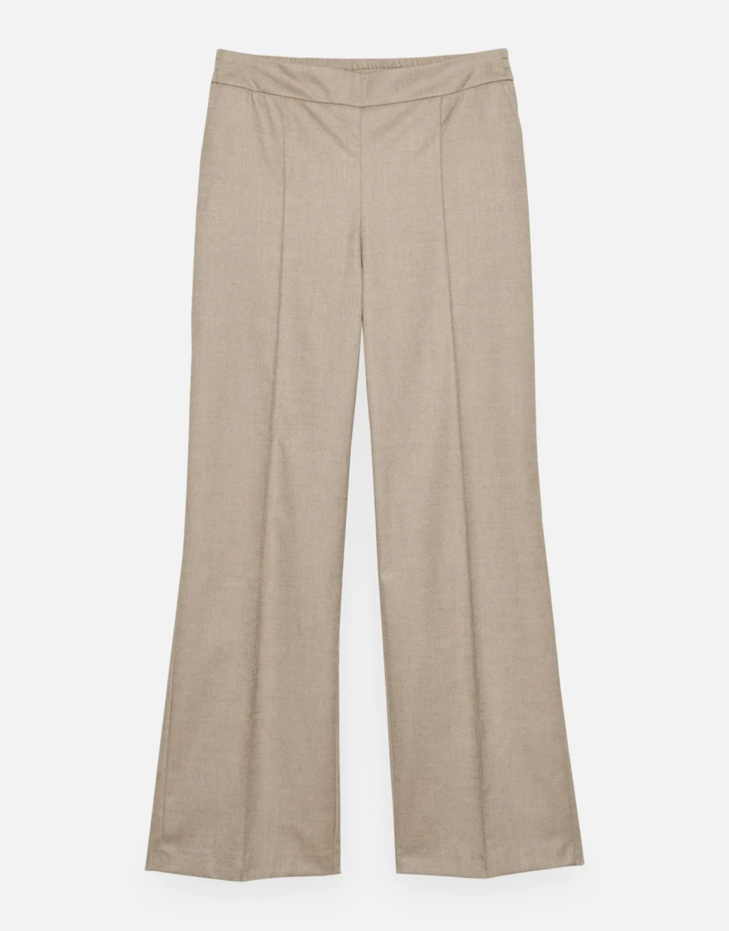 De Pantalon Van Een Hoogwaardige Viscosemix Maakt Indruk Met Een Mooie Peper-Zout-Optiek. De Rechte, Lange Broekspijp Wordt Optisch Langer Door Een Bies. De Elastische Tailleband Aan De Achterkant Zorgt Voor Een Aangenaam Draagcomfort.