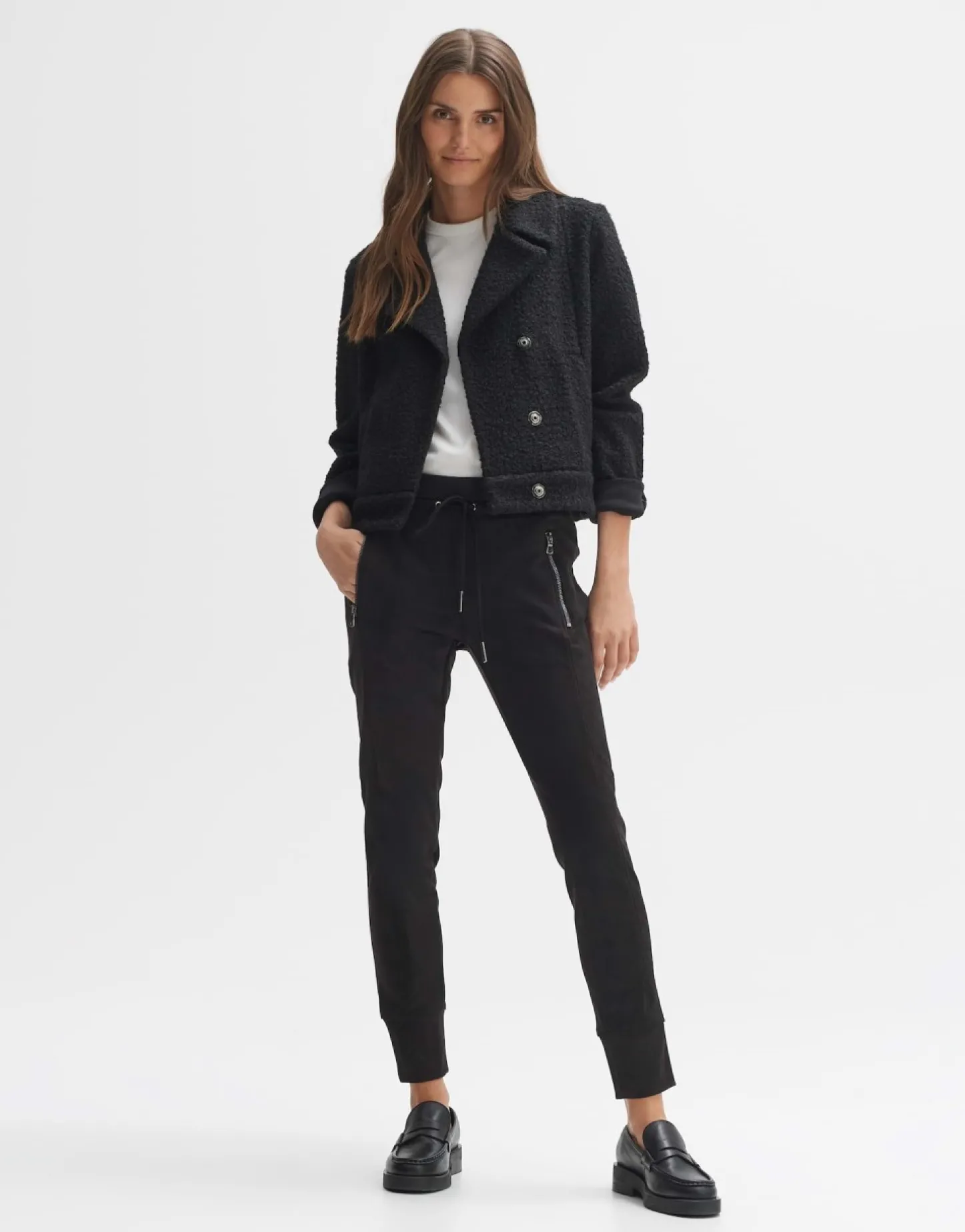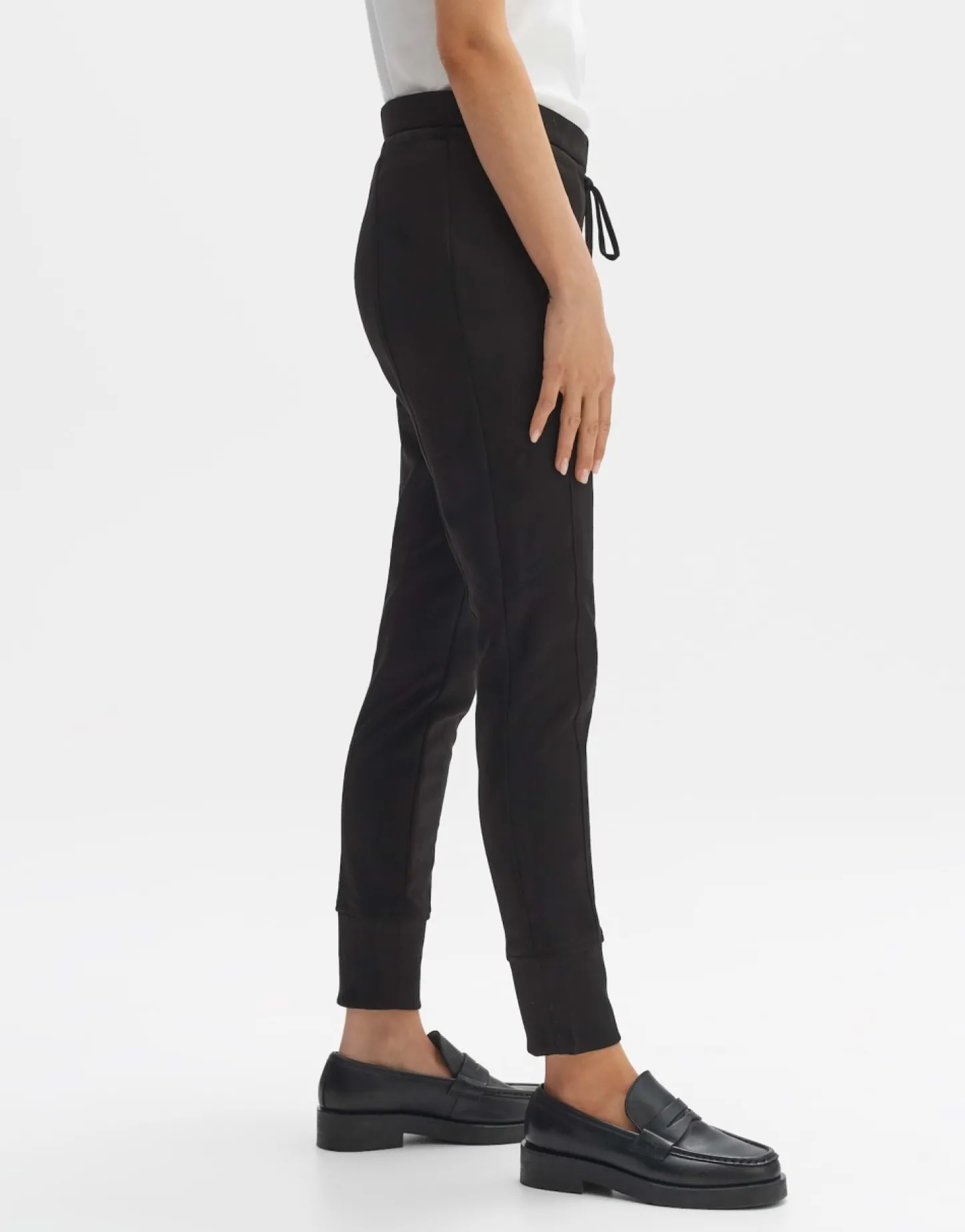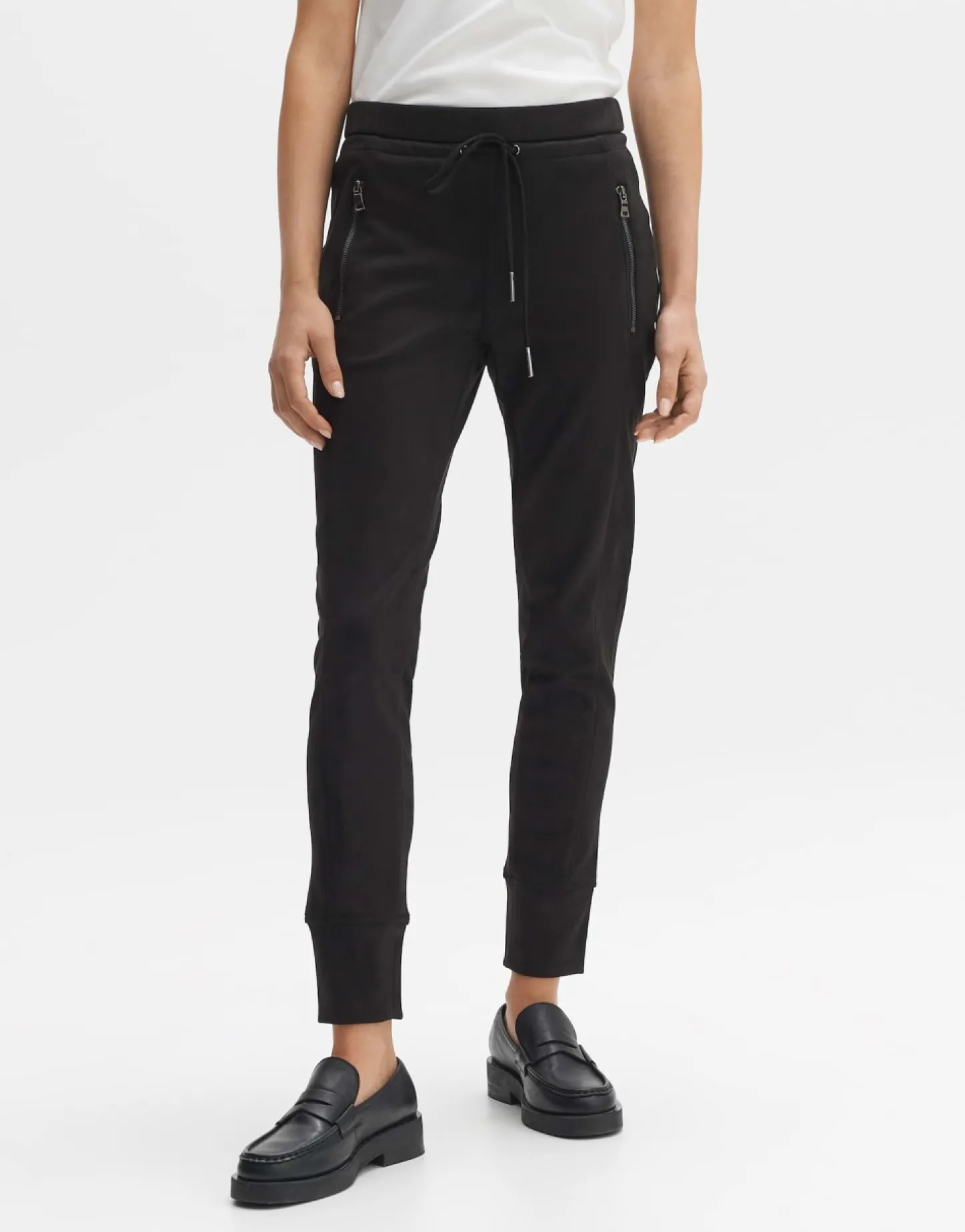 De Stoffen Broek Maakt Indruk Met Zijn Zachte Suede-Look. De Deelnaden Geven Het Smalle Been Een Nog Gestrekter Uiterlijk En Laten Het Leer Er Authentieker Uitzien. De Rits En Het Trekkoord Met Metallic Details Geven De Broek Een Sportieve Touch.