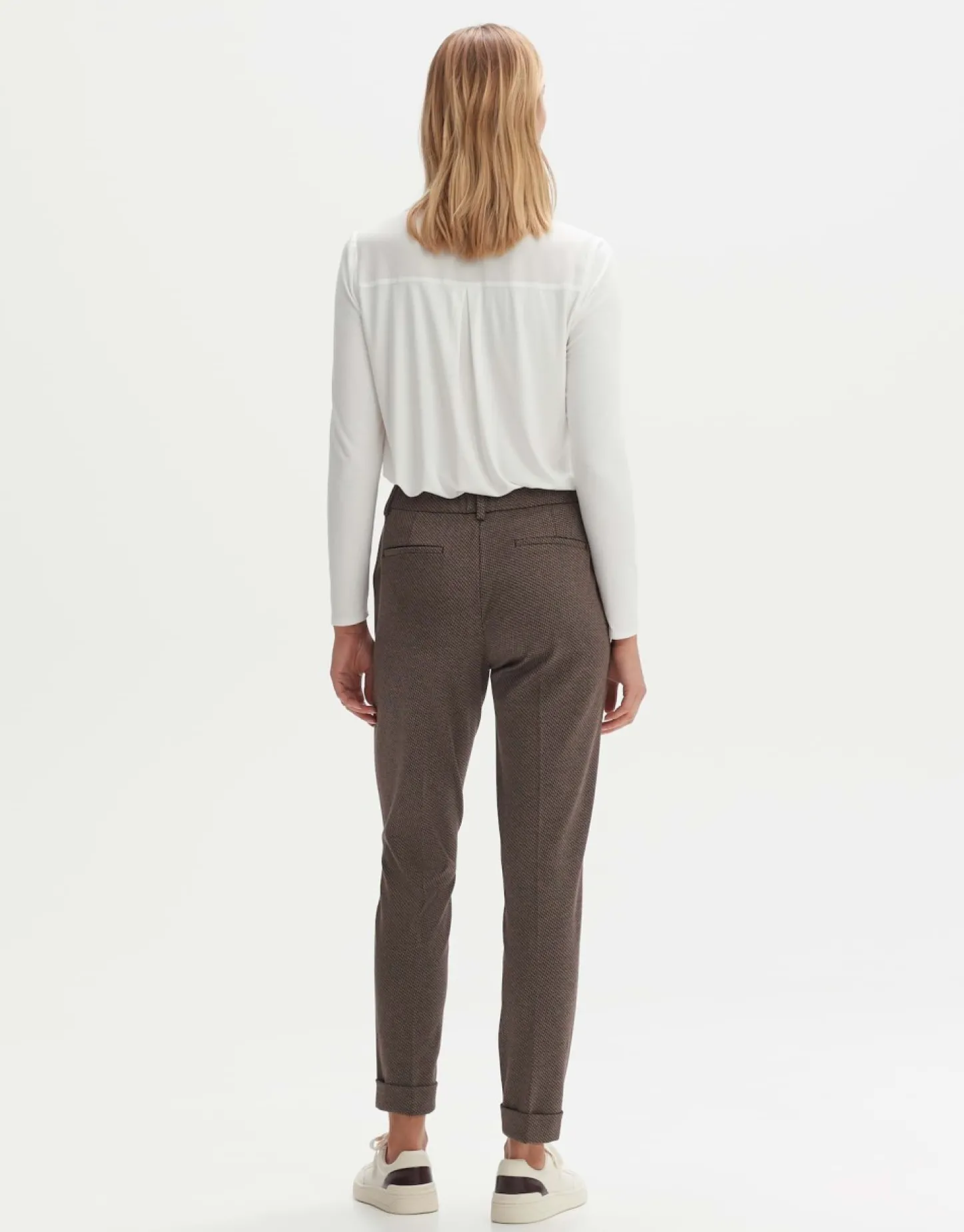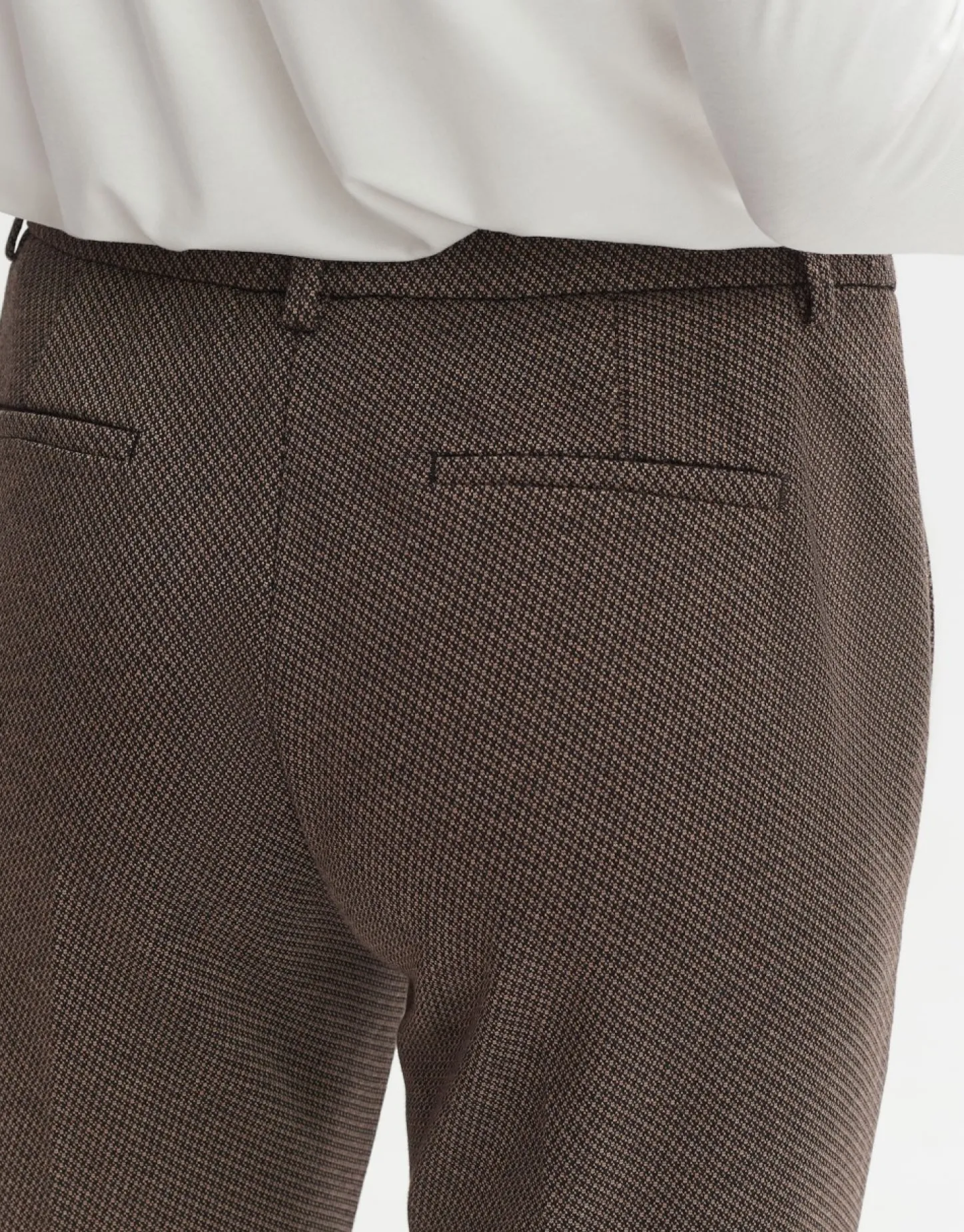 De Stoffen Broek Heeft Een Modern Stadssilhouet. De Pijpen Lopen Taps Toe Naar De Onderkant En Zijn Super Gemakkelijk Te Dragen Dankzij De Elastische Gebreide Stof. De Tailleband Is Elastisch Aan De Achterkant Voor Maximaal Comfort.