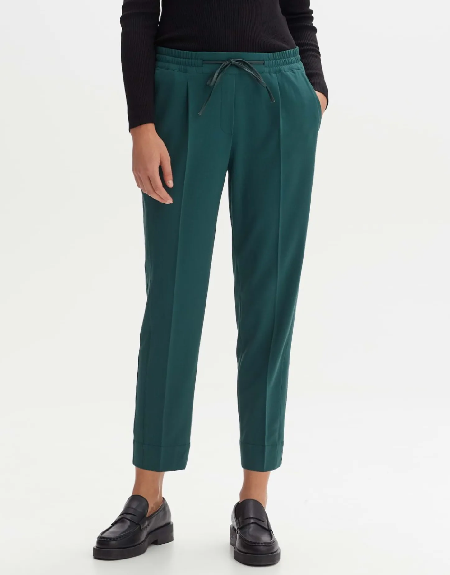 Deze Stoffen Broek Van Een Comfortabele Viscosemix Krijgt Een Casual Touch Door De Jogger Tailleband. De Sigarettenvorm Heeft Een Klassieke Uitstraling En De Vouw Rekt Het Been Optisch Uit.