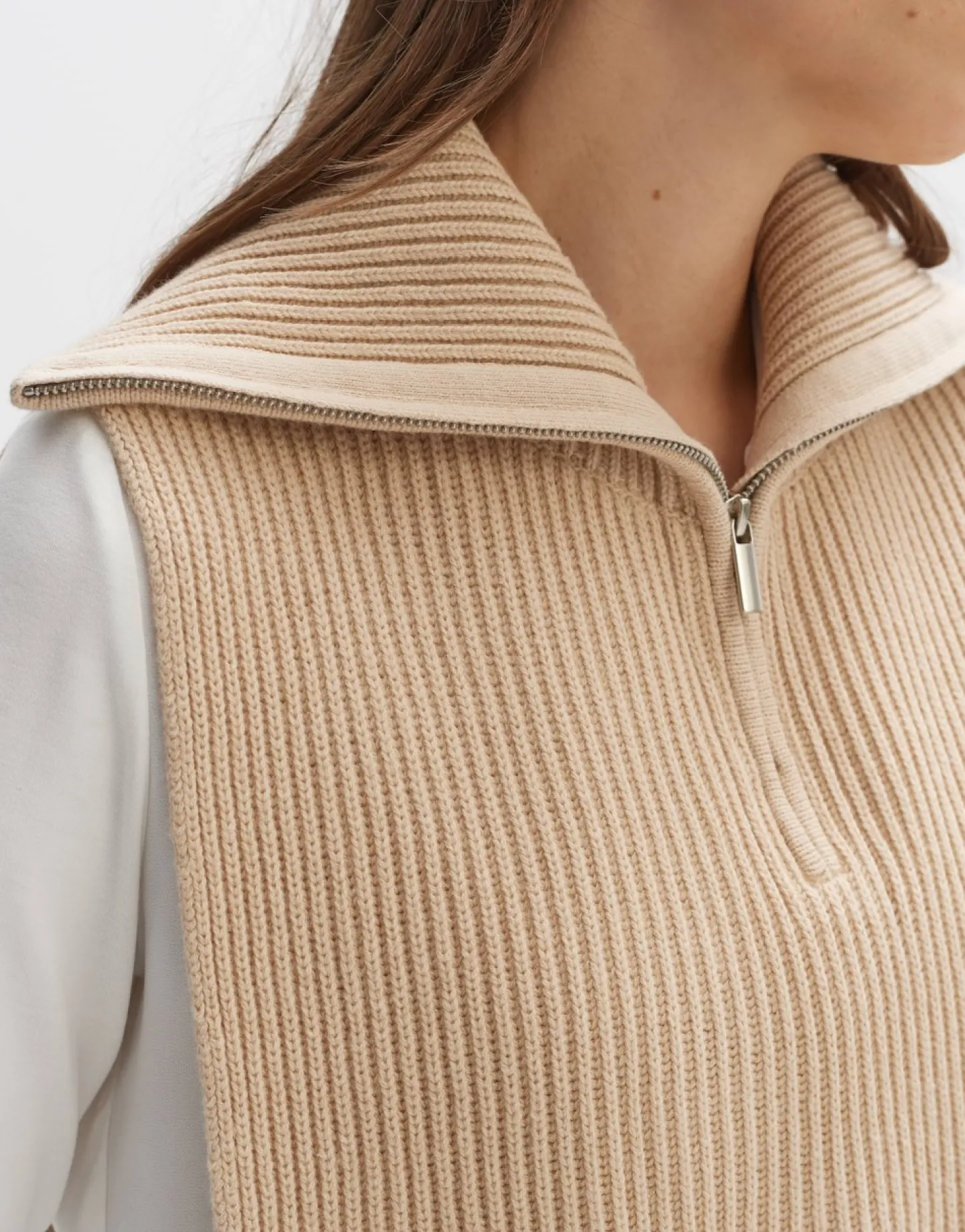 De Slipover Van Zachte Bci Cotton Mix Is Een Geweldige Truienvervanger Voor Frisse Dagen. Het Gebreide Gilet Heeft Een Eenvoudige, Lange Kraag Met Ritssluiting En Kan Naar Wens Worden Gedragen – Voor Een Coole Layering Look.