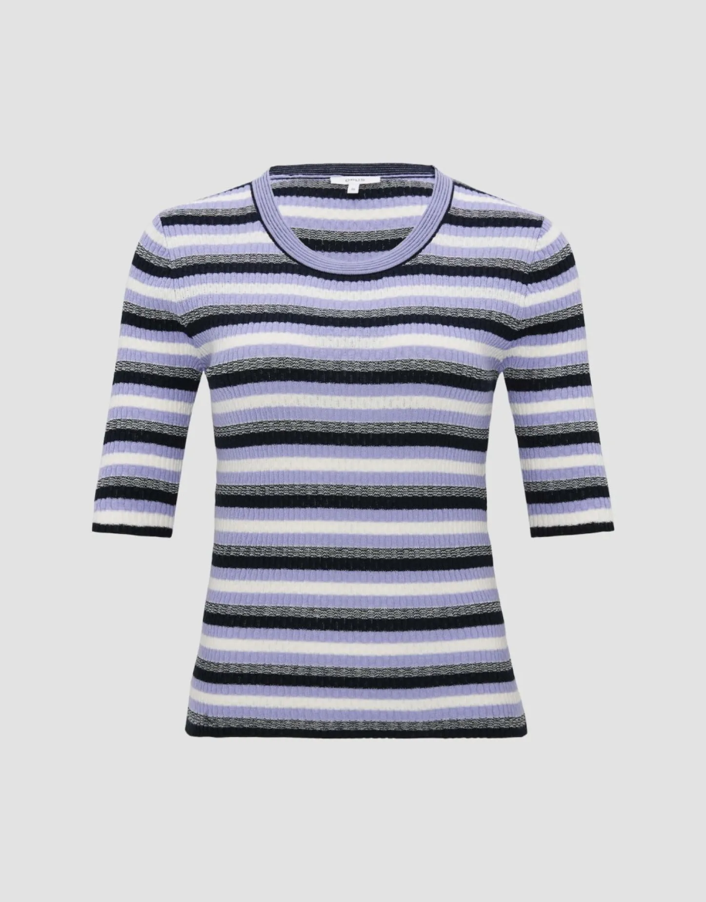 Het Gebreide Shirt Van Een Hoogwaardige Bci-Katoenmix Krijgt Een Modieuze Update Dankzij De Spannende Structuur In Het Garen En In De Breistijl. De Kleurcontrasterende Strepen Geven Het Breisel Een Vrouwelijke En Casual Uitstraling.