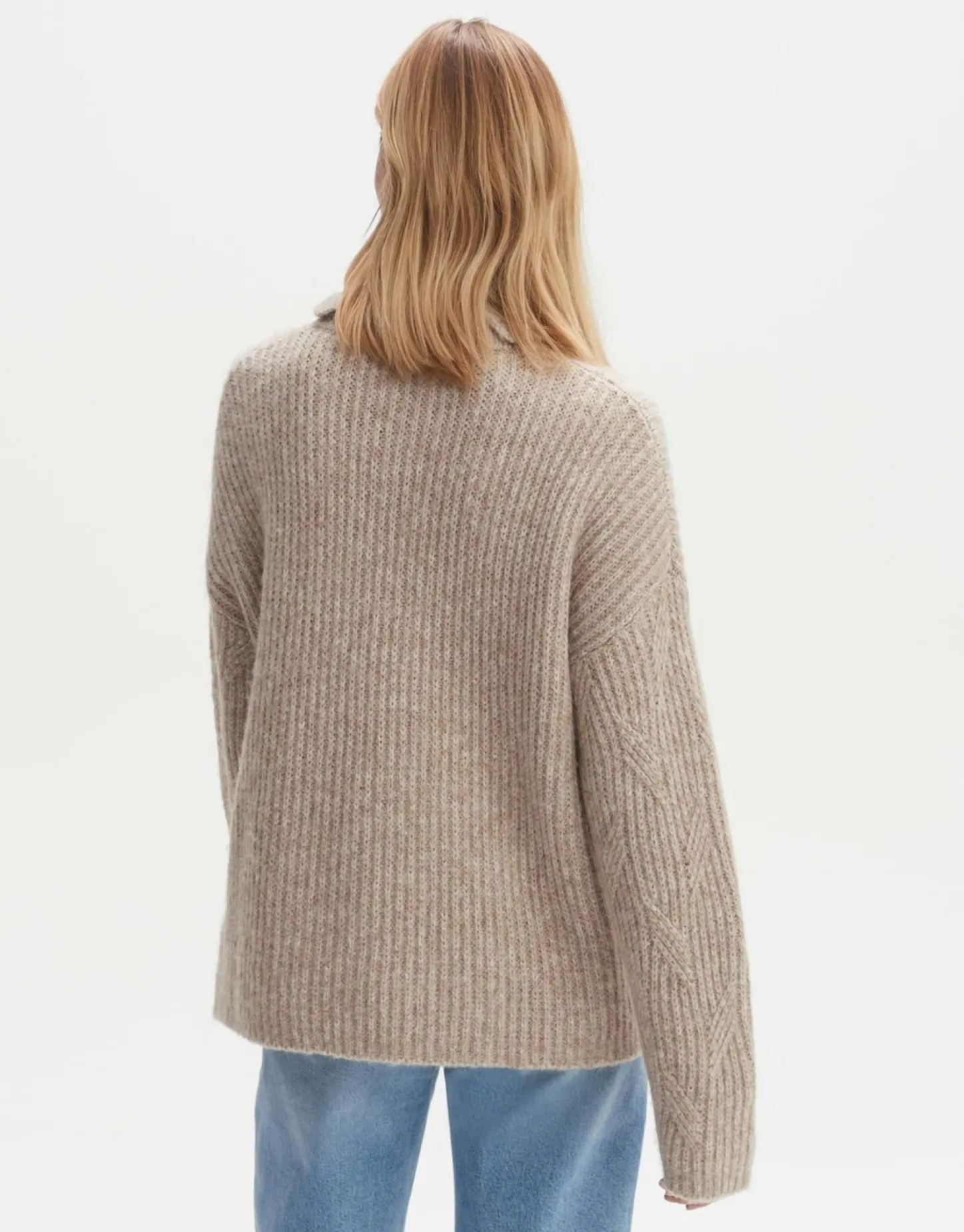 De Gebreide Trui Van Een Gerecyclede Polyestermix Heeft Een Dynamisch Kabelpatroon Dat Zorgt Voor Een Geweldige Gebreide Look. De Grote Kraag Is Verdeeld Door Een Split Aan De Hals.