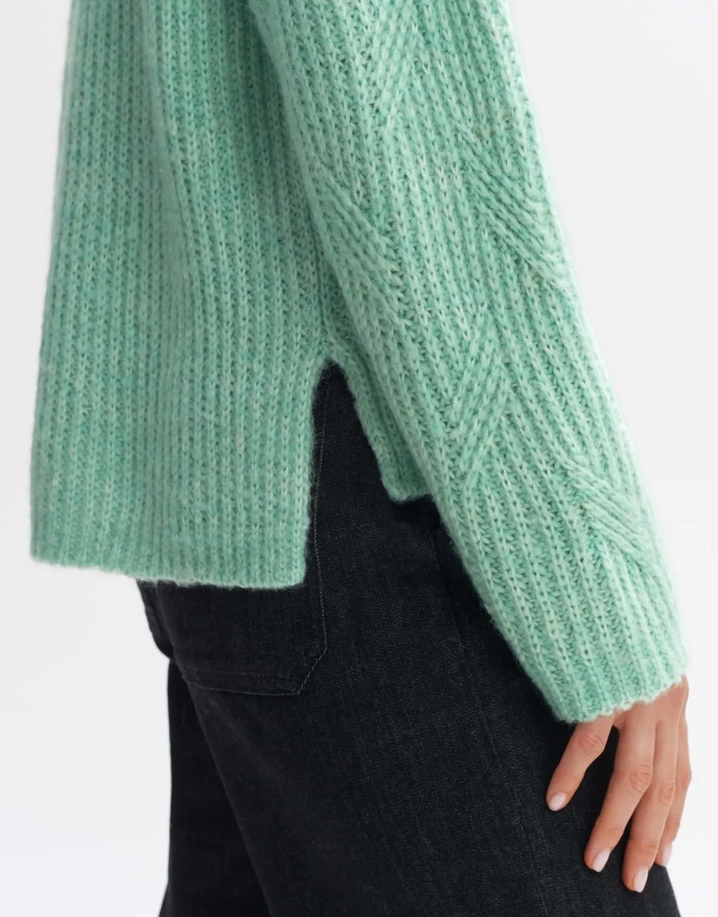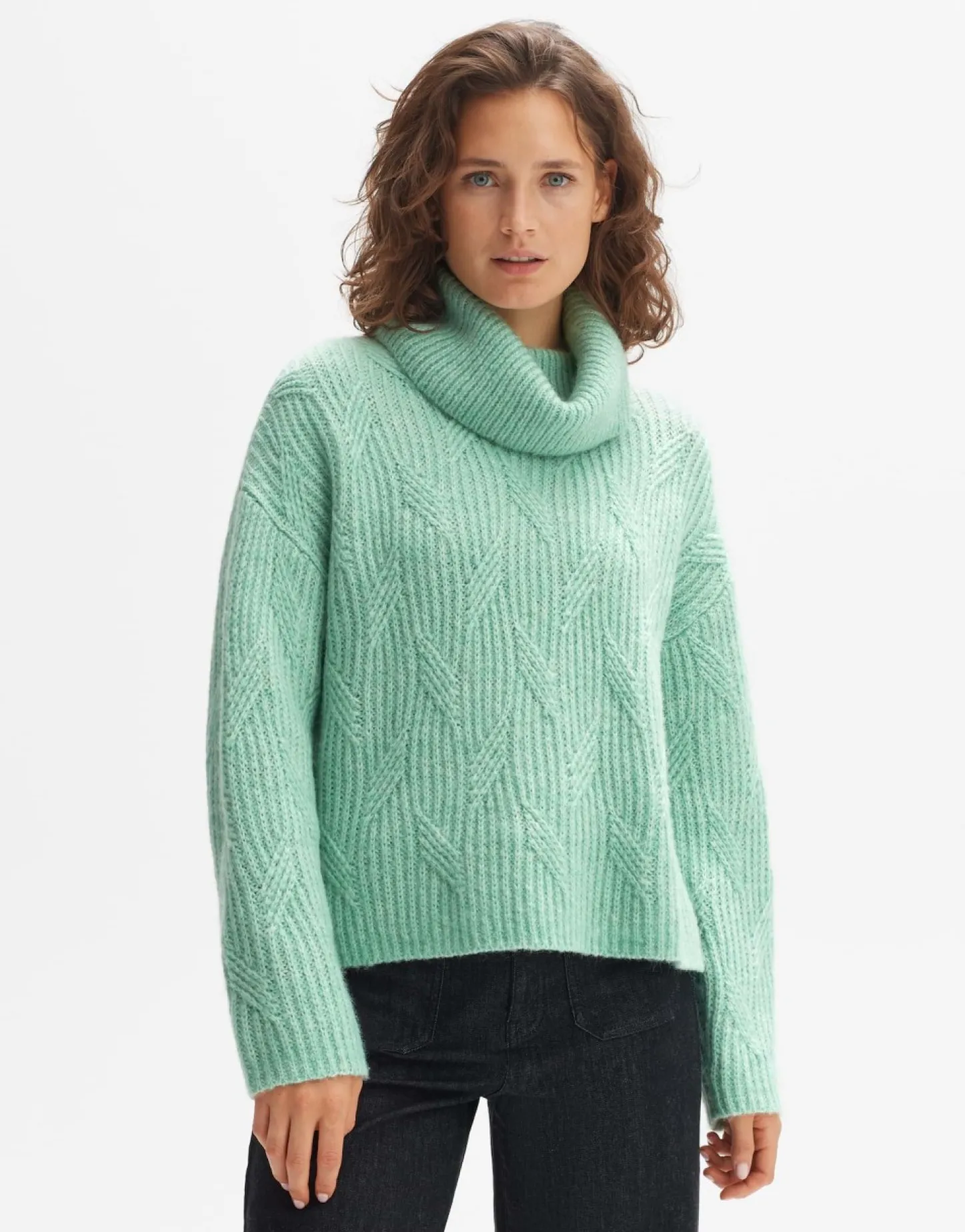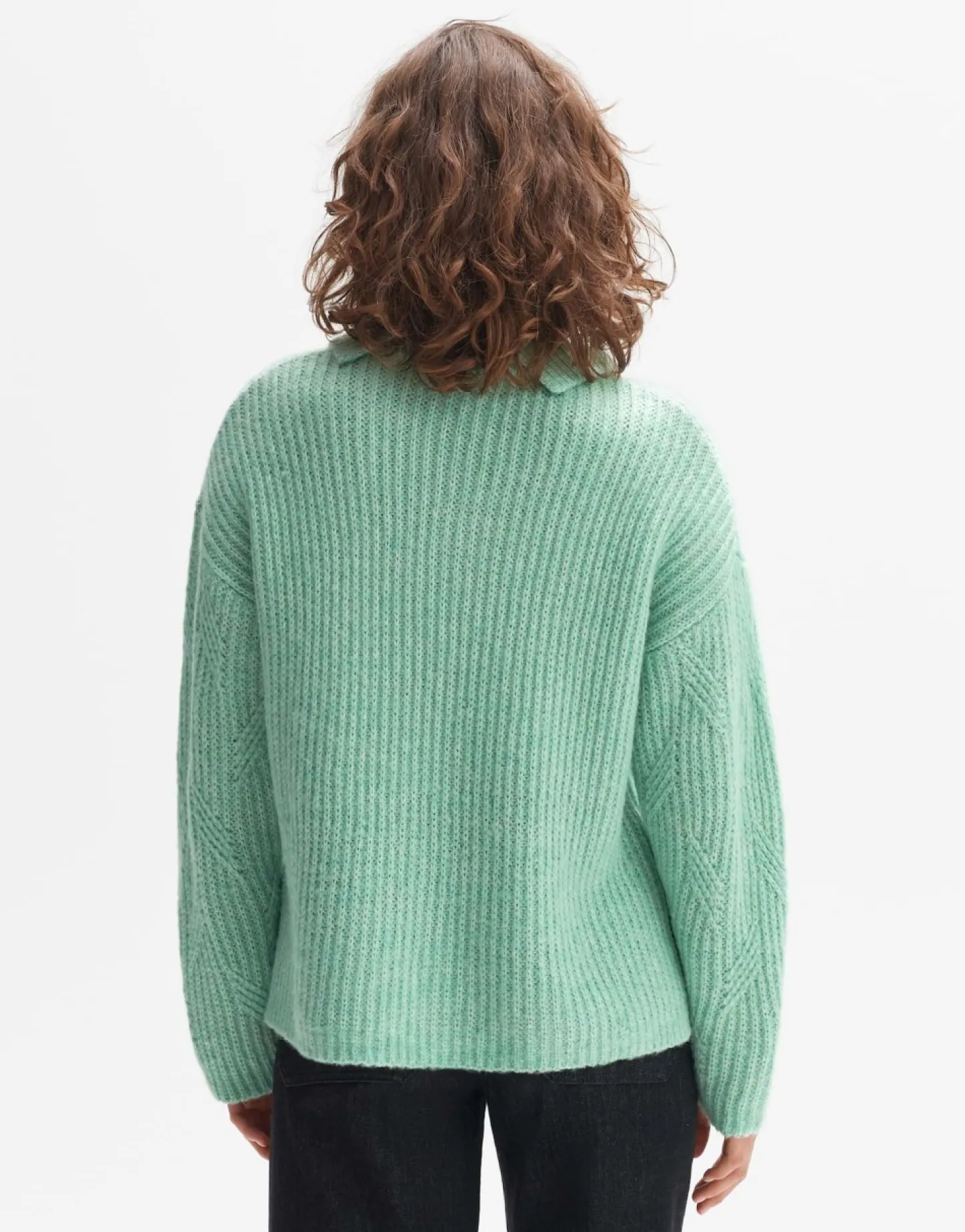 De Gebreide Trui Van Een Gerecyclede Polyestermix Heeft Een Dynamisch Kabelpatroon Dat Zorgt Voor Een Geweldige Gebreide Look. De Grote Kraag Is Verdeeld Door Een Split Aan De Hals.