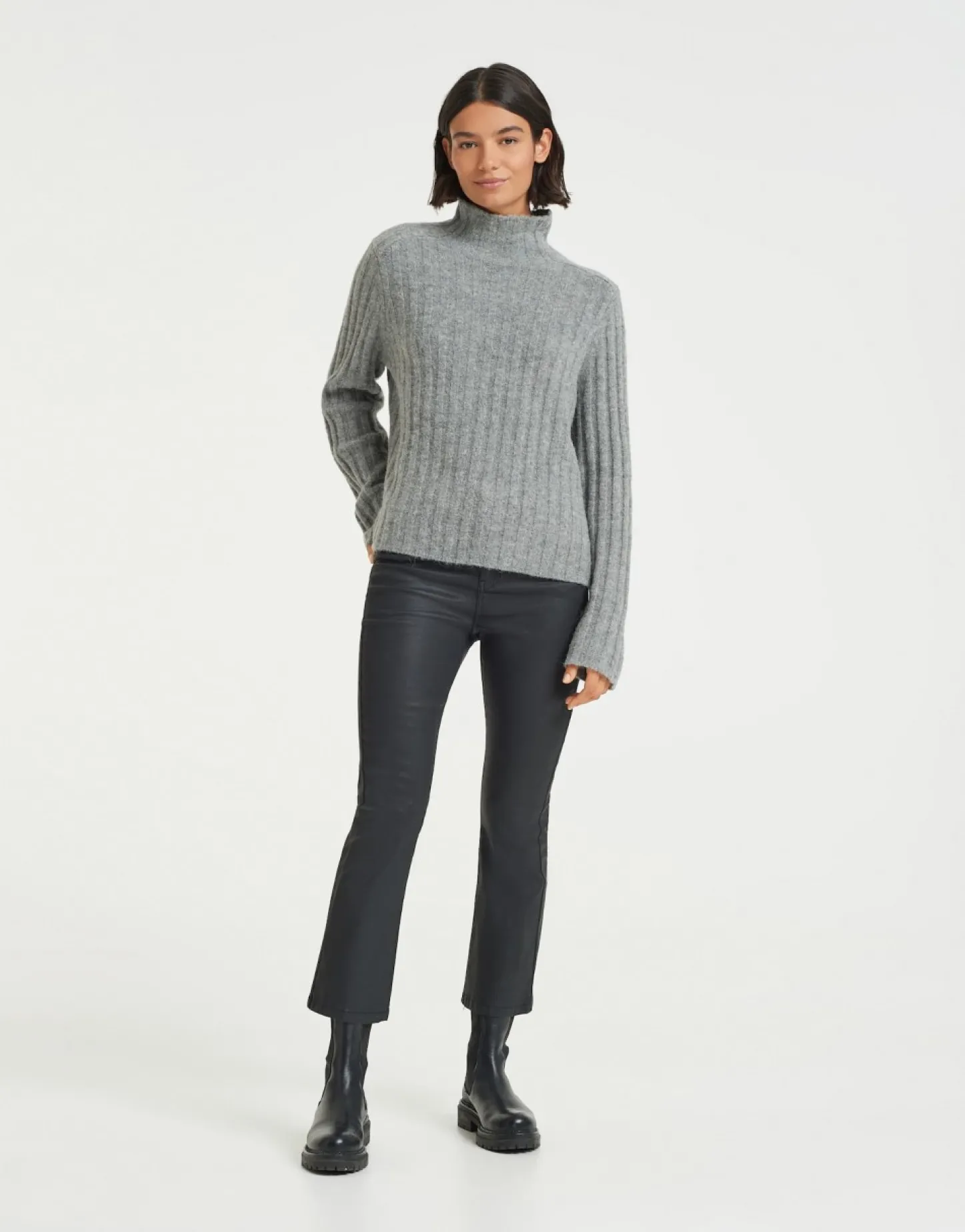 De Gebreide Trui Van Alpaca-Wolmix Overtuigt Met Een Coole Retrolook. De Modieuze Rib Is Gespeeld Over Een Boxy Fit Met Een Opstaande Kraag. De Trui Is Langer Aan De Achterkant Dan Aan De Voorkant.
