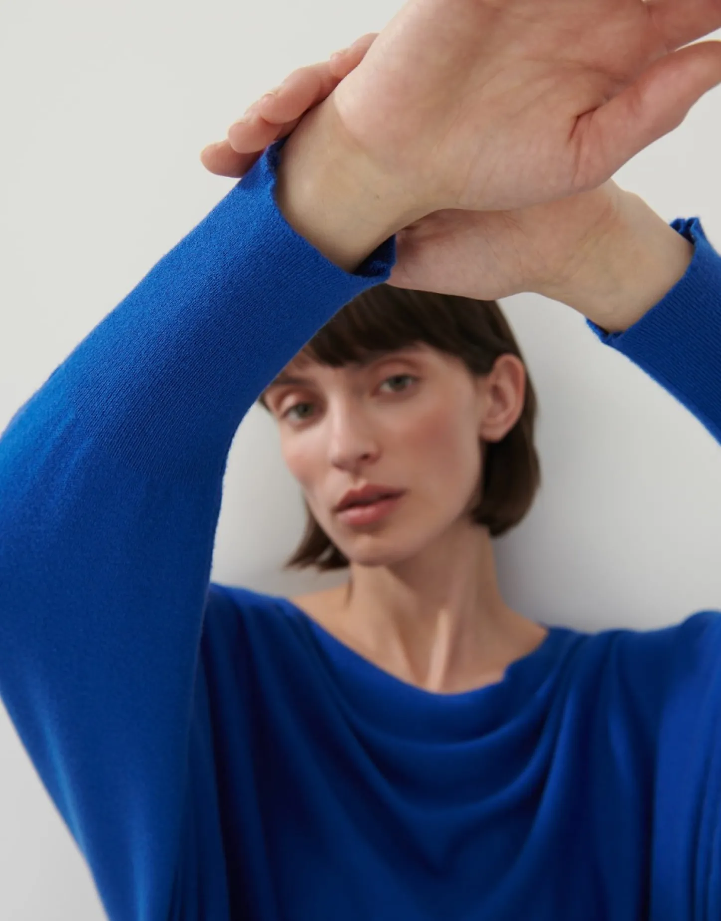 De Gebreide Trui Van Een Extreem Zachte Viscosemix Krijgt Een Modern O-Vormig Silhouet Door De Vleermuismouwen. De Manchetten Maken De Trui Af Met Smalle Ribboorden.