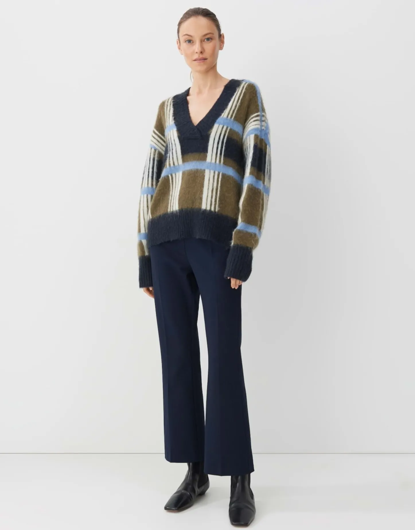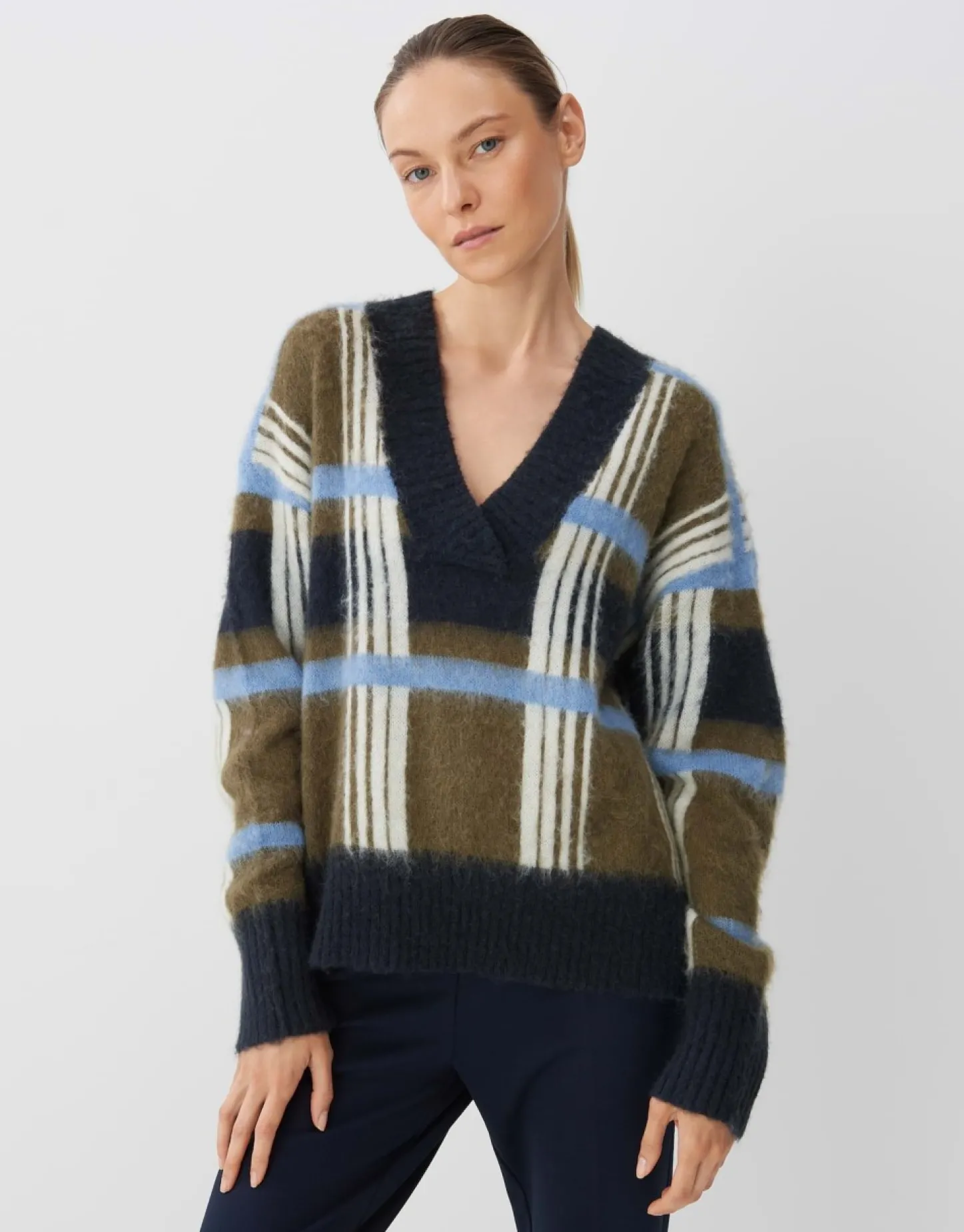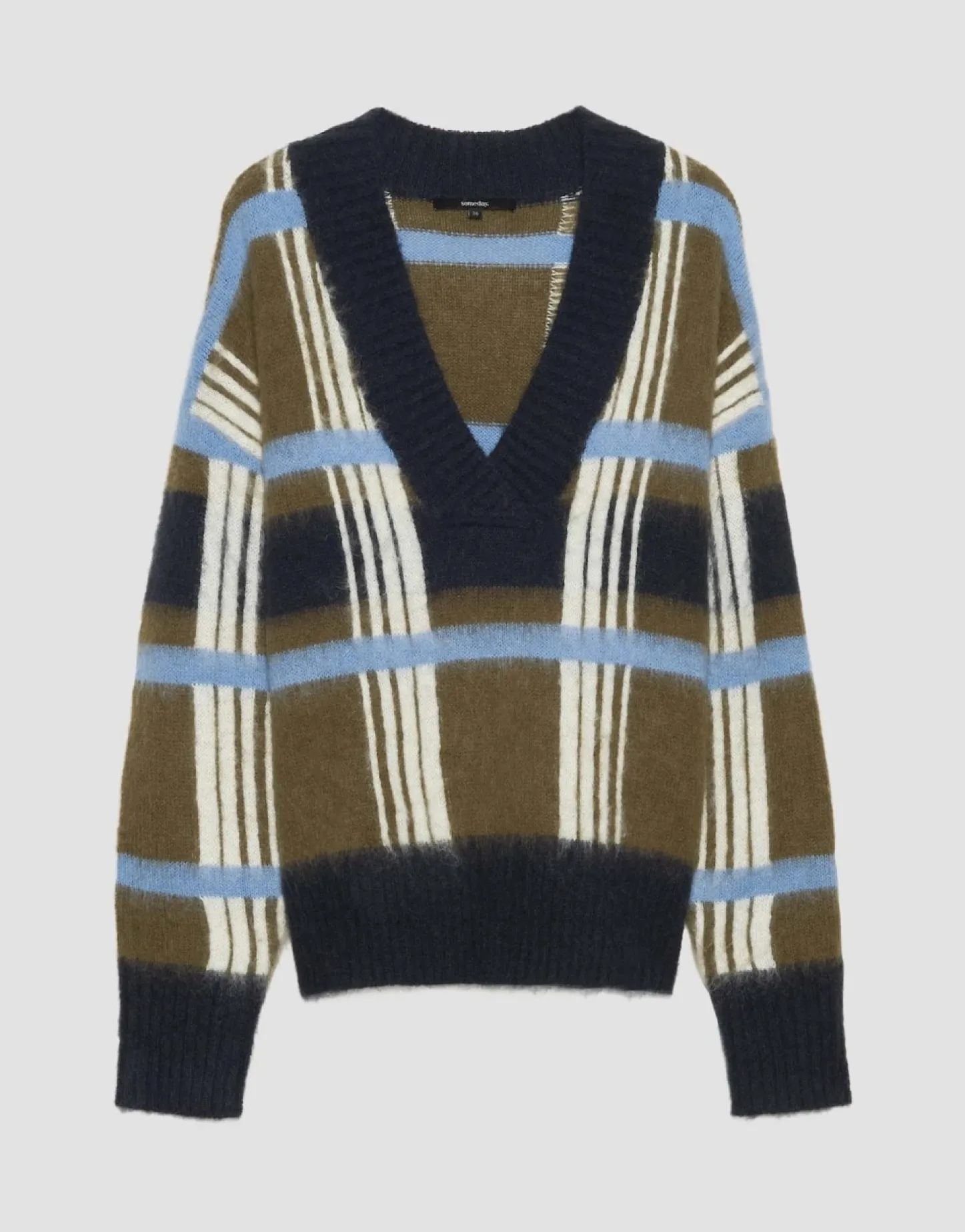 De Gebreide Trui Van Een Pluizige Wolmix Komt Tot Leven Met Een Royaal Ruitpatroon En Tegelijkertijd Verfrissende Kleurb…