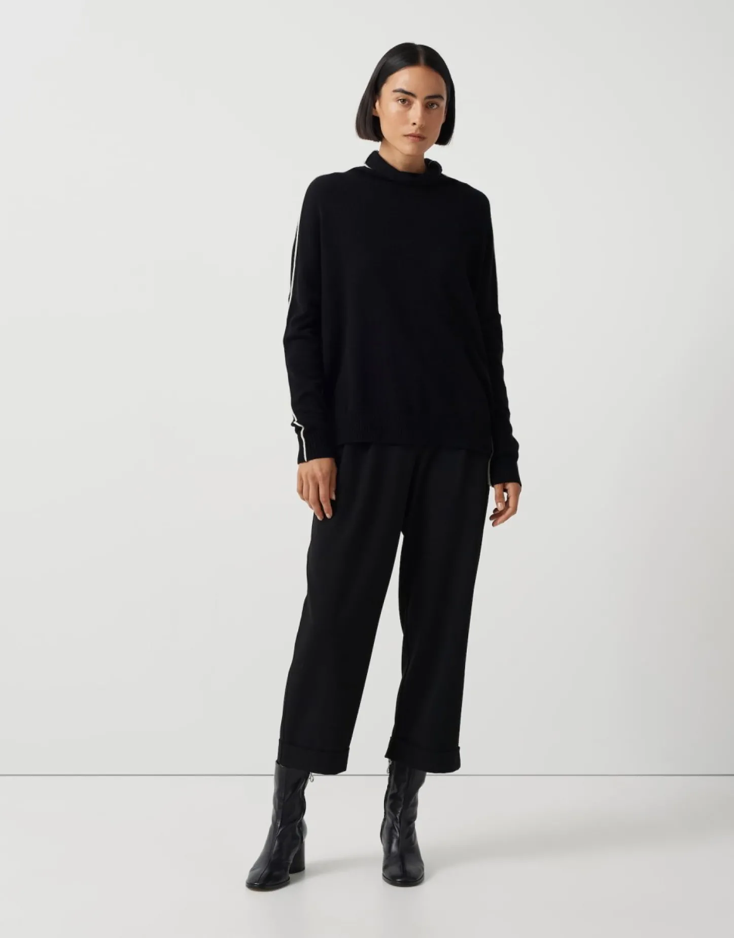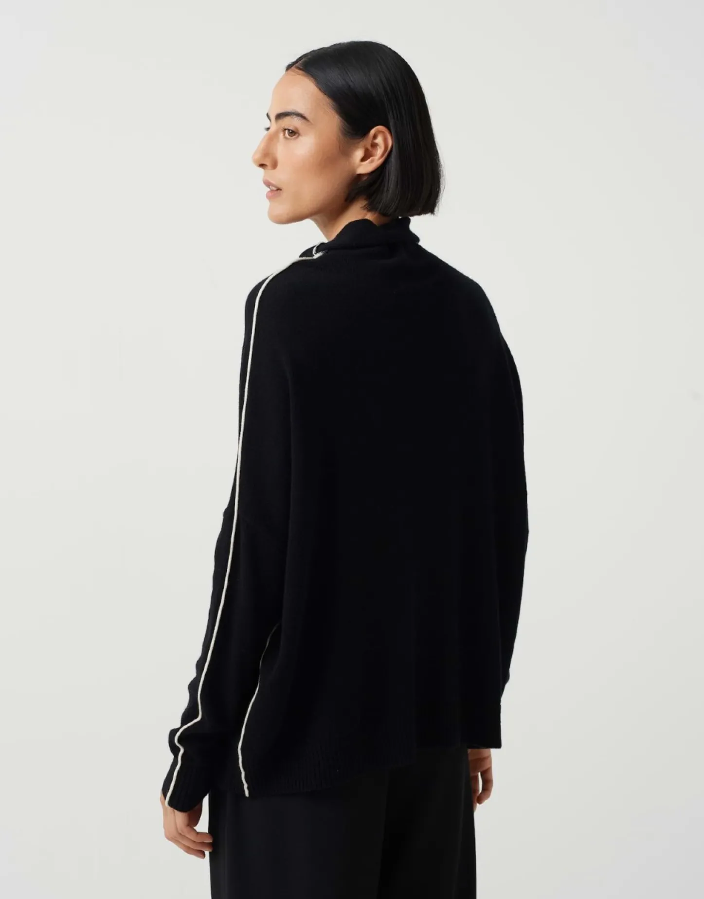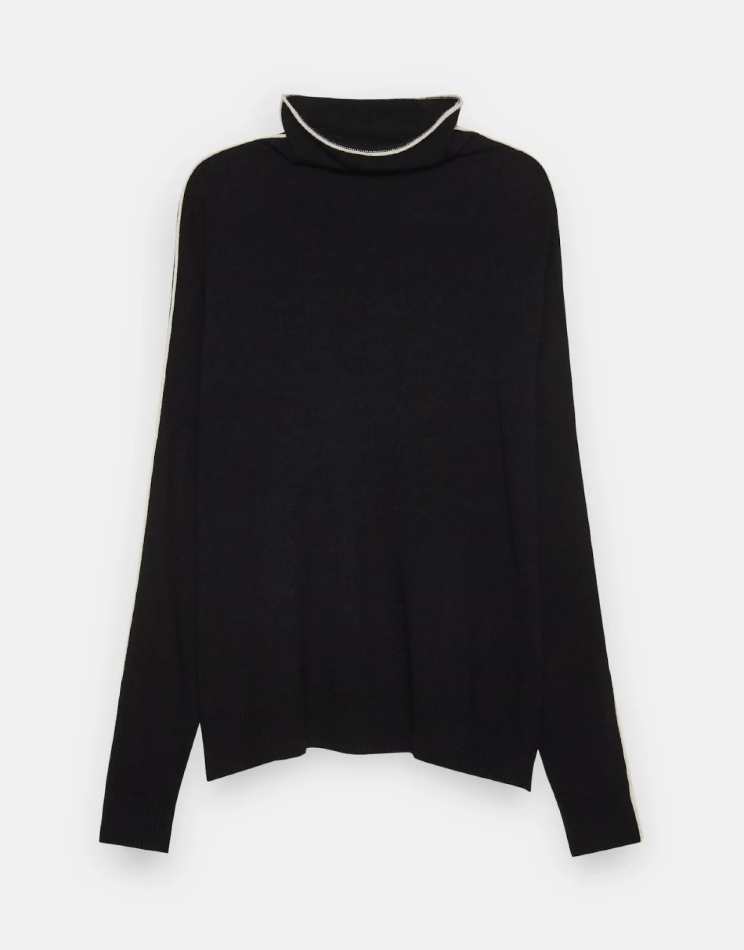 De Gebreide Trui Van Een Viscosemix Krijgt Een Luxueus Gevoel En Een Zachte Touch Door Het Kasjmiergehalte. Contrasterende Contouren Geven De Trui Een Soort Omlijsting. Een Trechtervormige Hals Zorgt Voor Een Elegante Afwerking.