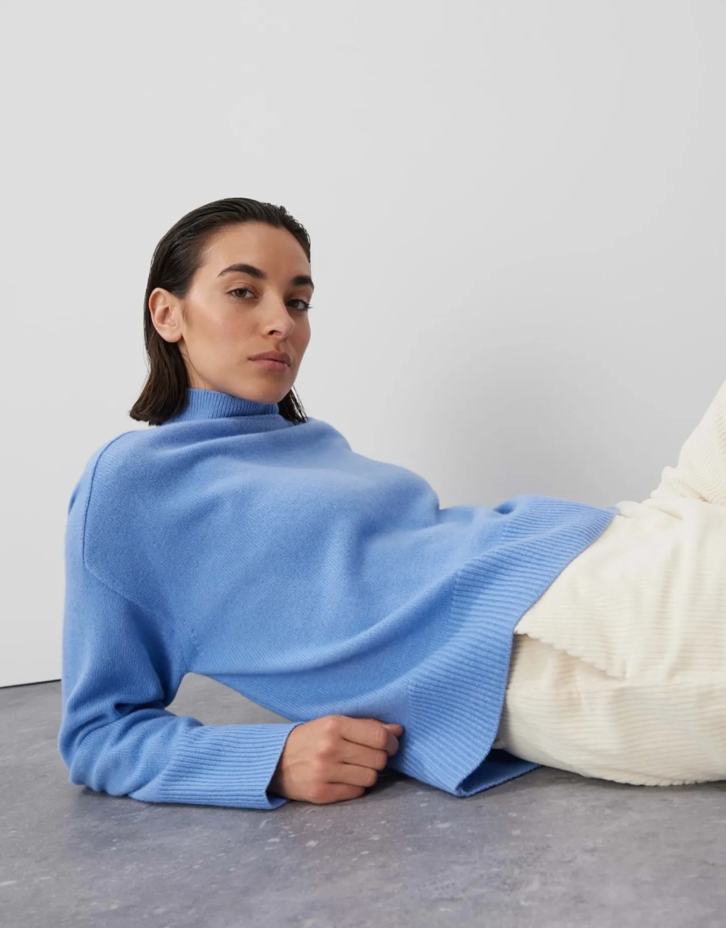 De Gebreide Trui Van Een Wolmix Is Eenvoudig Gehouden En Concentreert Zich Op Discrete Details. De Elegante Opstaande Kr…