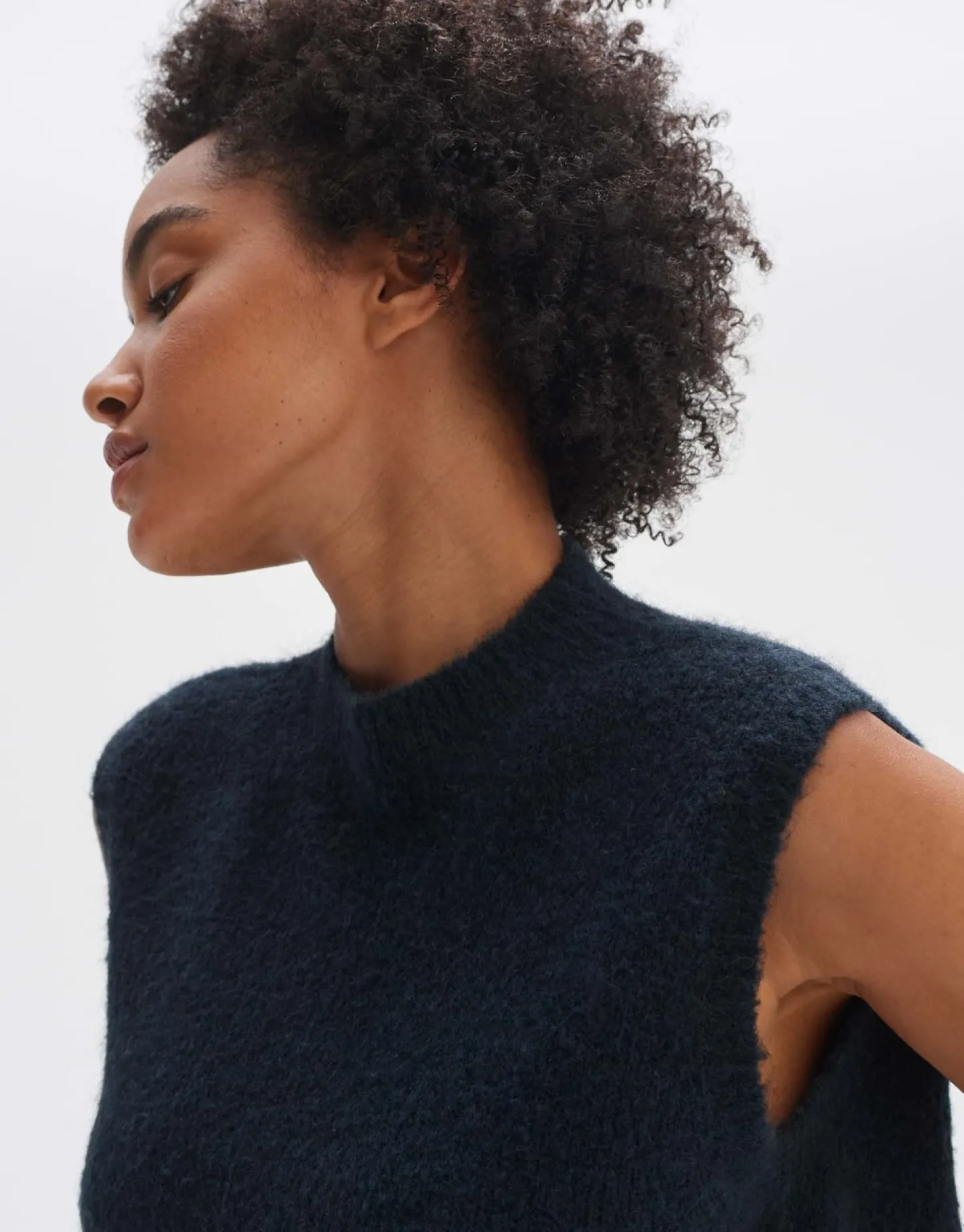 The Tank Top With Mohair Content Fascinates With Its Wonderfully Soft Feel. The Fit Is Kept Straight And Has Knitted Hems On The Slightly Wider Armhole, Collar And Waist. Small Side Slits Give The Simple Look A Fashionable Touch.