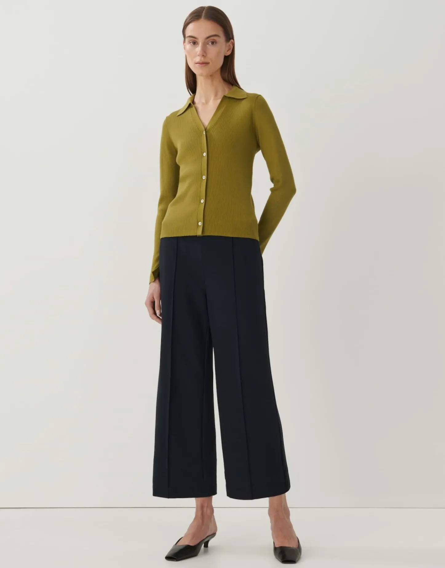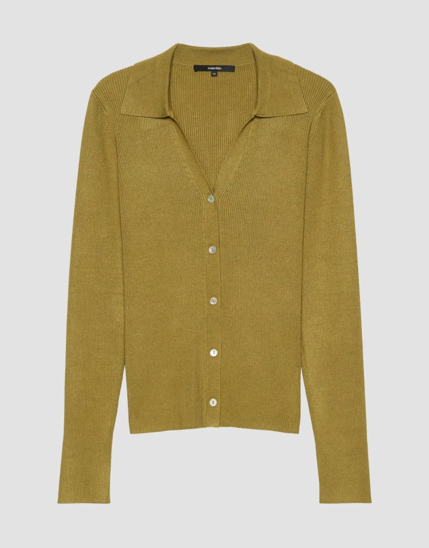 Het Vest Is Gemaakt Van Een Ecovero™ Viscosemix In Een Fijn Ribbreisel En De Kraag Is Geinspireerd Op Het Poloshirt. Kleine Parelmoeren Knopen Zorgen Voor Een Elegante Sluiting.
