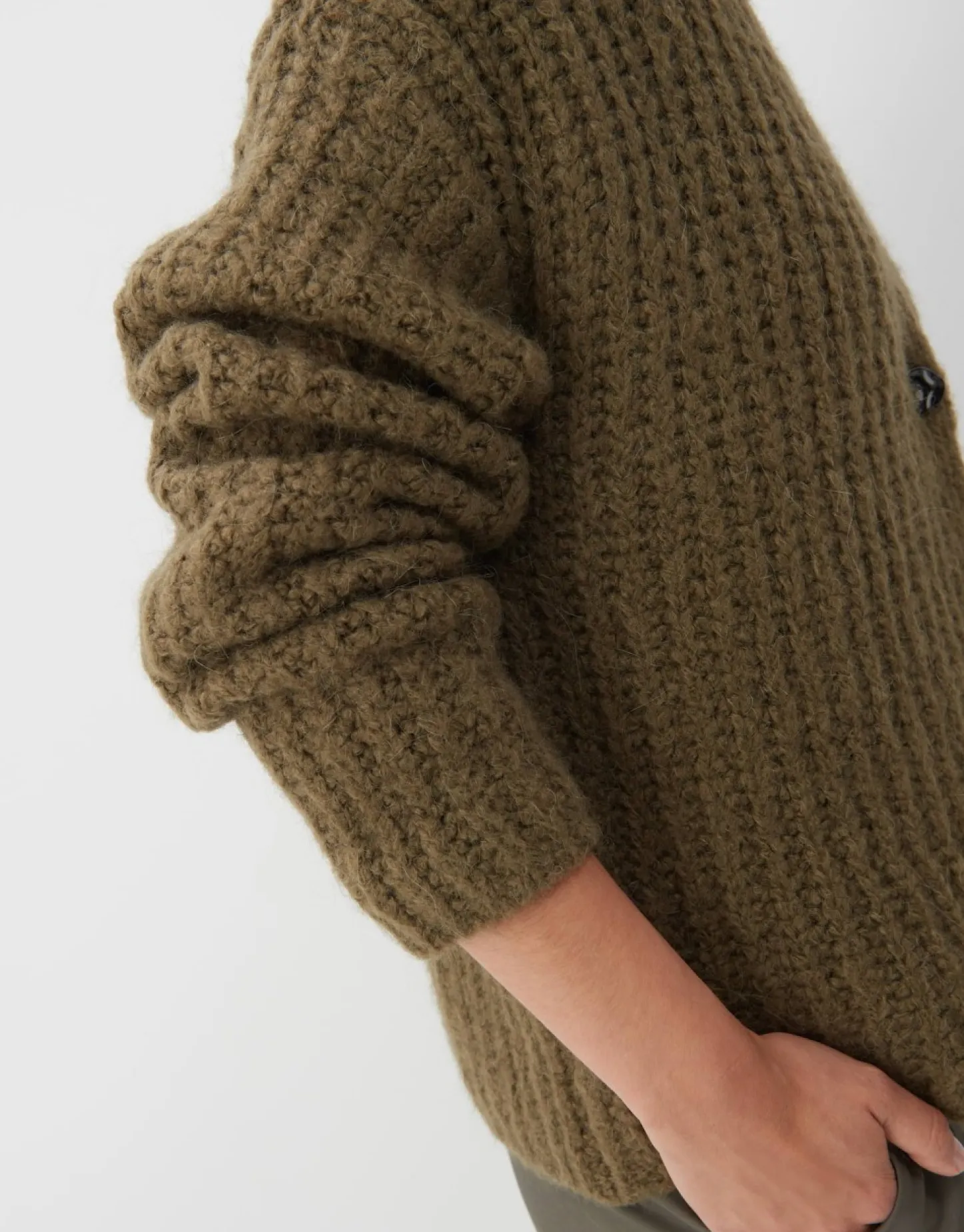 Het Vest Is Gemaakt Van Een Behaaglijke Alpacawolmix En Heeft Een Grove Breisteek. De Zilveren, Organisch Gevormde Knopen Aan De Voorkant Zorgen Voor Een Visueel Hoogtepunt.