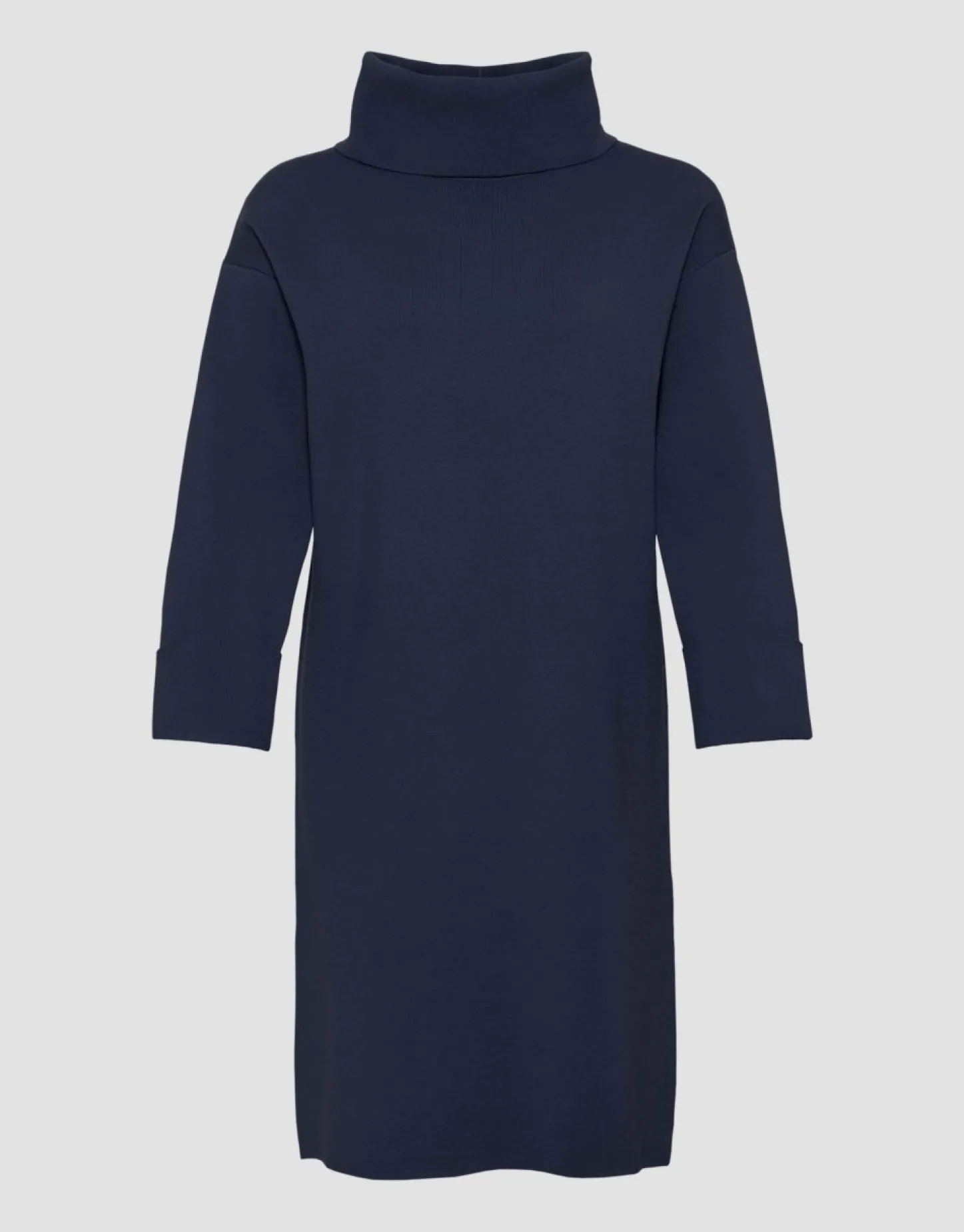 De Gebreide Jurk Van Een Hoogwaardige Viscosemix Krijgt Een Grote Stevigheid Door Het Milano-Breisel En Slijt Niet. De Zomen Zijn Netjes Gehouden En De Mouwen Lopen Uit. Een Brede Kraag Rondt De Jurk Af.