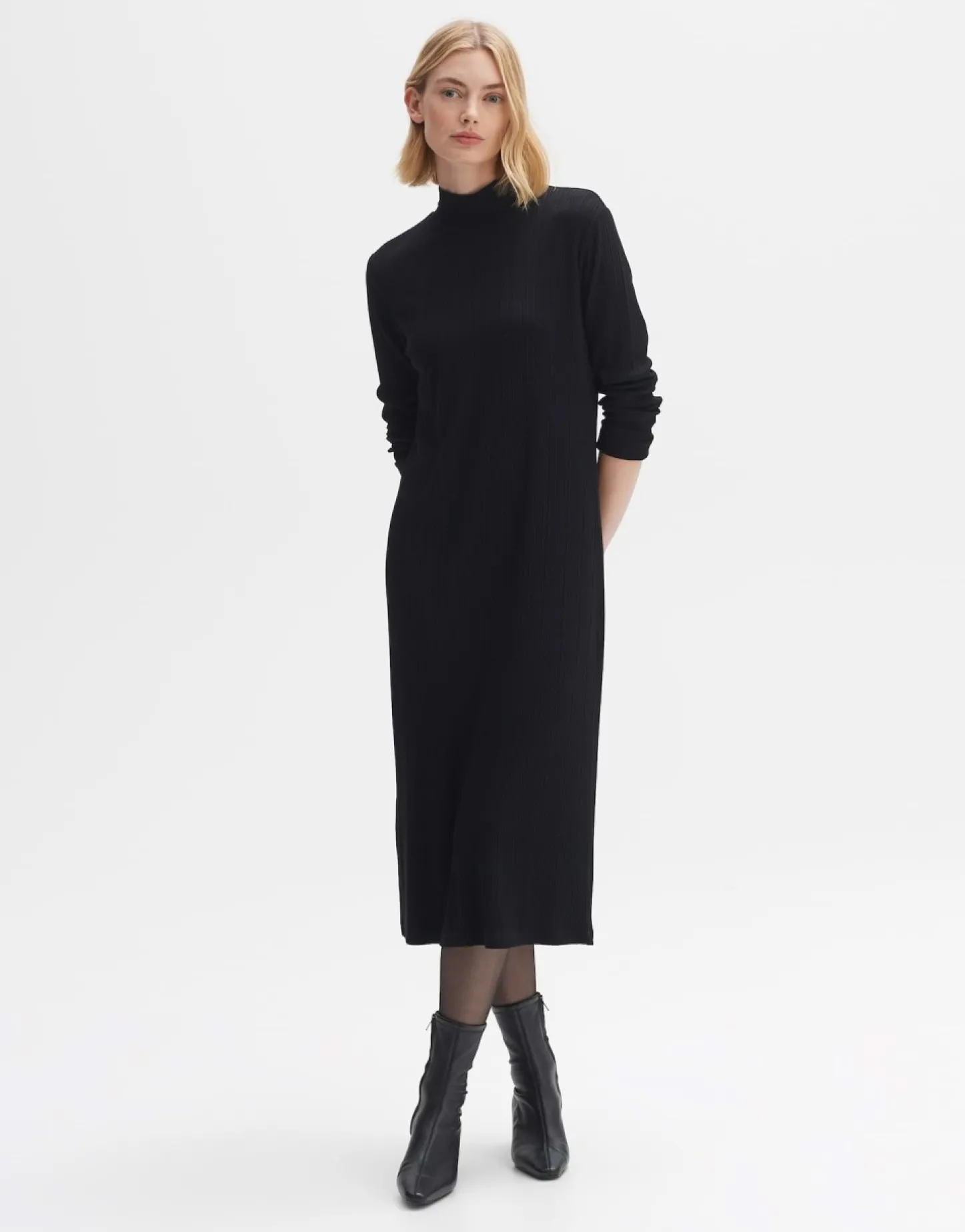 De Gemakkelijke Jurk Van Een Vloeiende Ecovero™ Viscosemix Speelt Met Verschillende Breedtes Van Lengteribbels En Rekt…