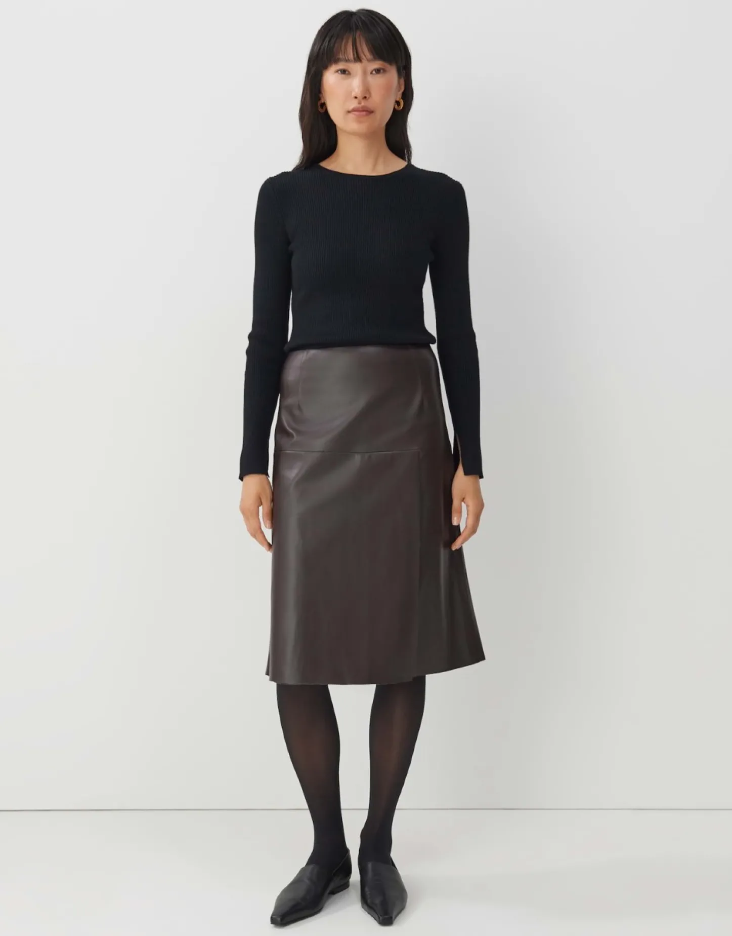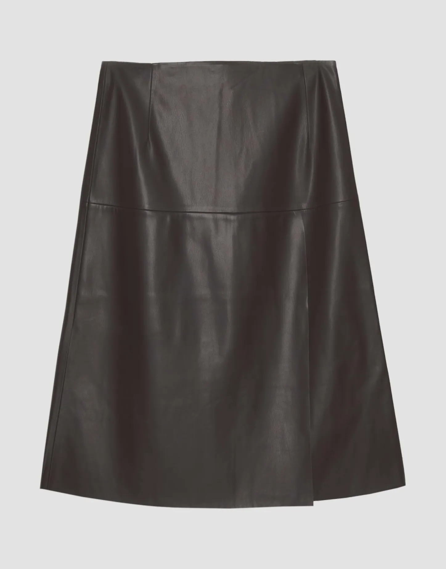 De Midirok Van Boterzacht Imitatieleer Is Een Vrouwelijk Modestatement Voor Zakelijke En Casual Looks. De Lengte- En Dwarsnaden Creeren Een Authentieke Lederlook. De Uitlopende Midivorm Is Vrouwelijk.