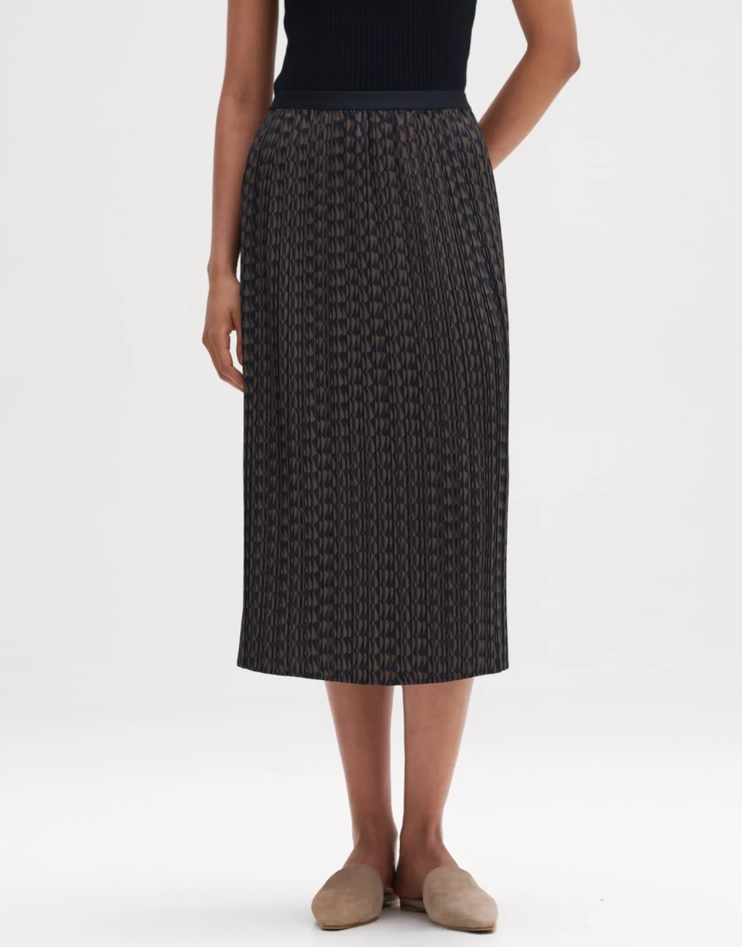 De Plooirok Van Een Lichte, Zomerse Stof Overtuigt Door De Spannende Tweekleurige Structuur In Het Oppervlak En Is Gemaa…