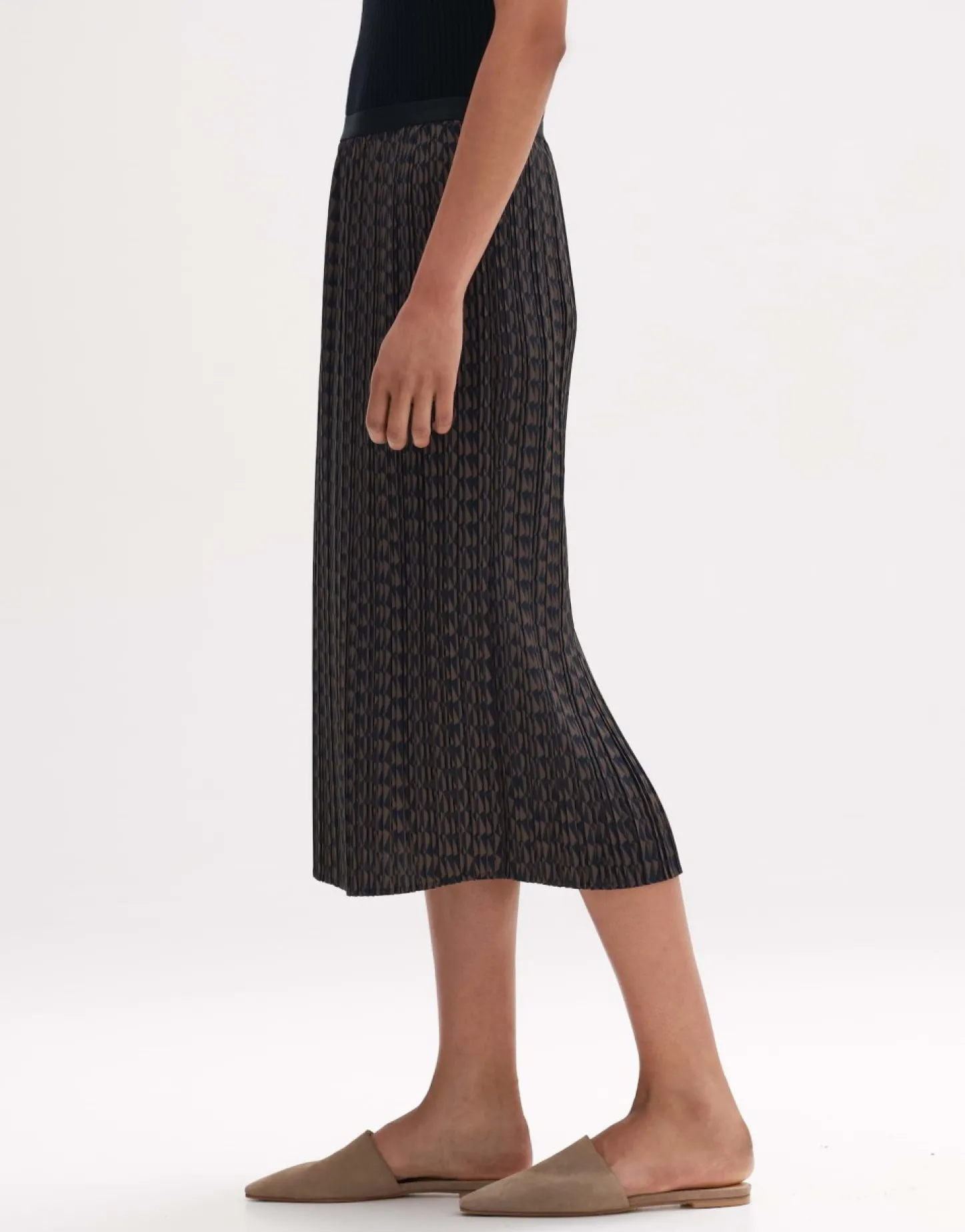 De Plooirok Van Een Lichte, Zomerse Stof Overtuigt Door De Spannende Tweekleurige Structuur In Het Oppervlak En Is Gemaakt In Strak Gerangschikte Plooien. Aantrekken En Wegwezen – Een Absoluut Ready-To-Wear Item!