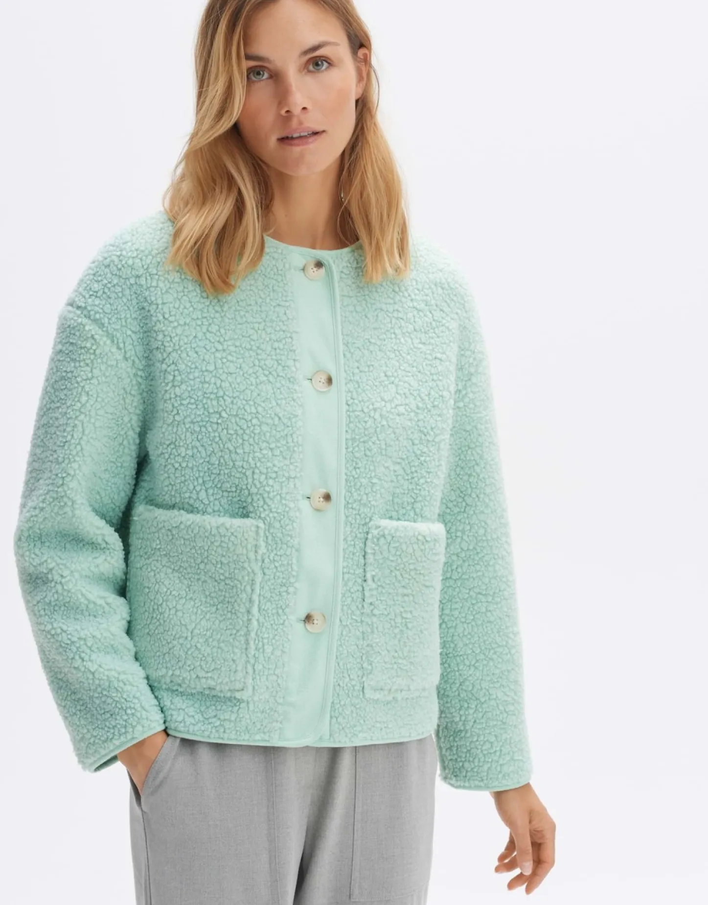 Het Korte Jack Is Gemaakt Van Een Pluizige, Zachte Teddystof En Krijgt Een Vrouwelijk Tintje Door De Ronde Halslijn. De Geborstelde Fleece Binnenkant Is Perfect Om Je Warm Te Houden Op Koude Dagen.