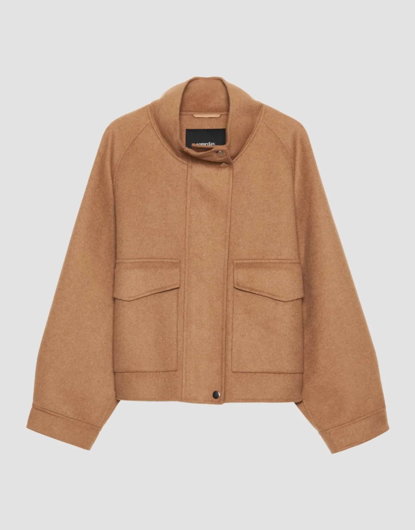 Dit Korte Jack Is Gemaakt Van Een Winterse Wolmix En Heeft Een Moderne Pasvorm. Het Korte, Boxy Silhouet Harmonieert Met De Oversized Klepzakken Aan De Voorkant. De Volumineuze Mouwen Zijn Aan Het Einde Smal Samengerimpeld Via Een Manchet.