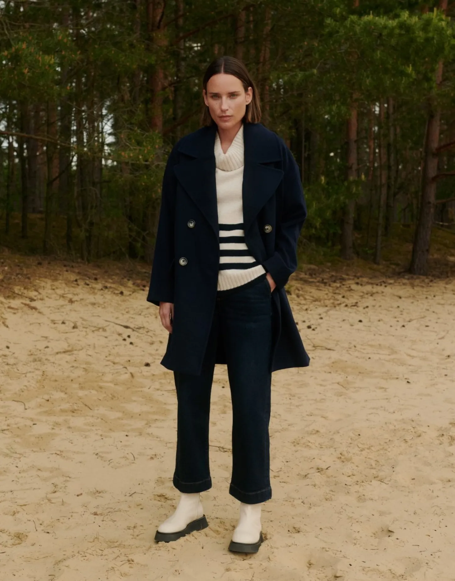 De Mantel Van Een Viscose-Wolmix Is Geinspireerd Op De Klassieke Caban-Jas. Kenmerkend Zijn De Brede Kraag, Revers En Du…