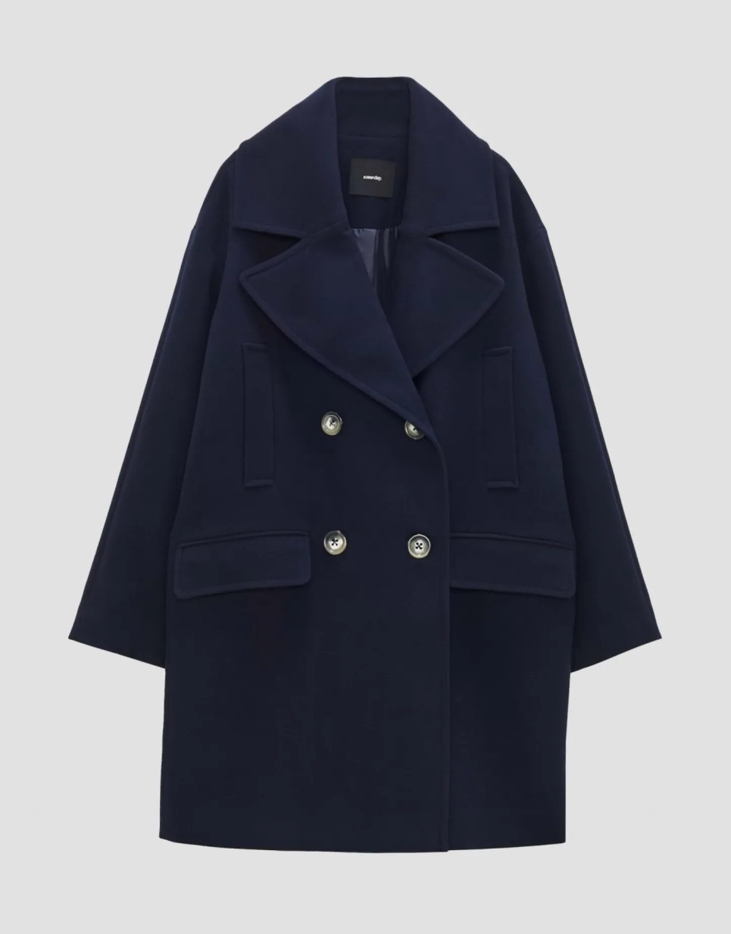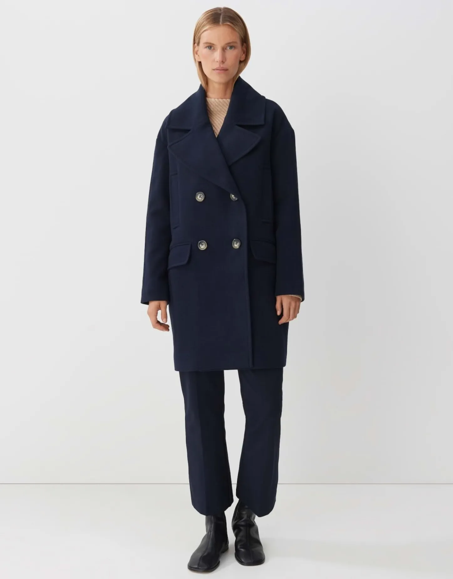 De Mantel Van Een Viscose-Wolmix Is Geinspireerd Op De Klassieke Caban-Jas. Kenmerkend Zijn De Brede Kraag, Revers En Dubbele Rij Knopen.