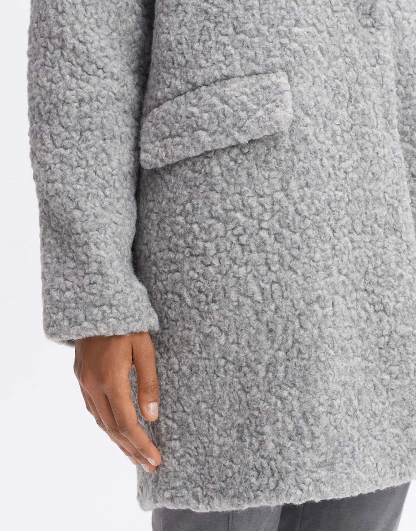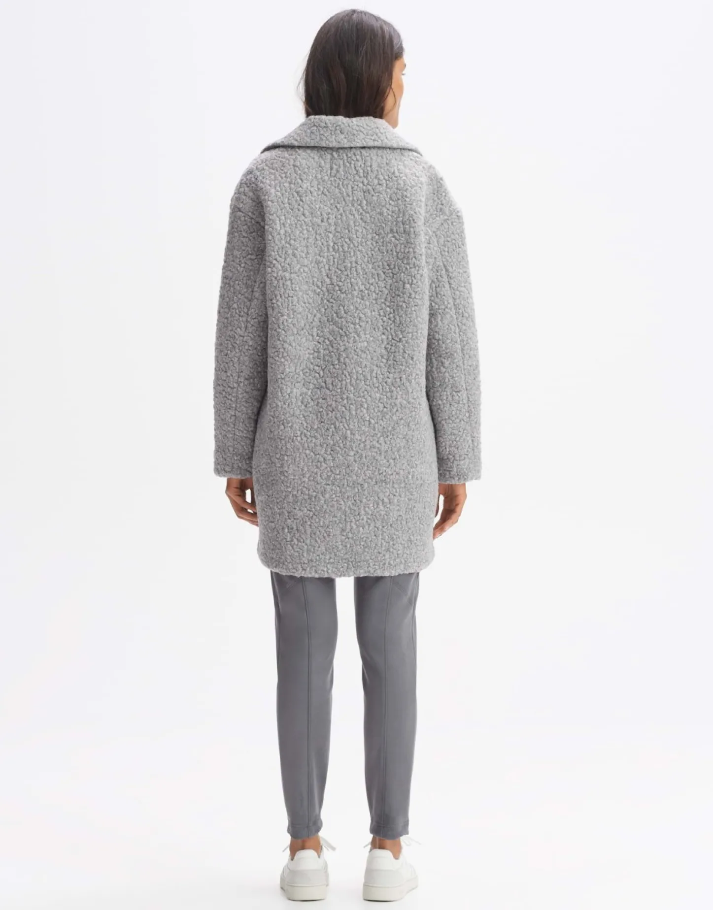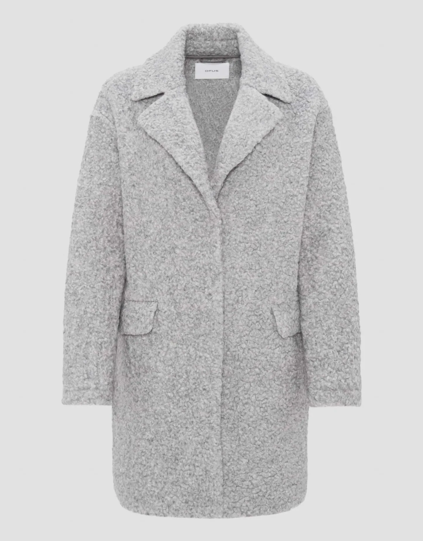 De Jas Van Wolmix Heeft Een Pluizige Teddy-Kwaliteit Over Een Verkort O-Vormig Silhouet. De Grote Revers En Opgestikte Klepzakken Voegen Een Sportief Detail Toe. De Metalen Drukknopen Zijn Verborgen In Gesloten Toestand – Voor Een Pure Casual Look.