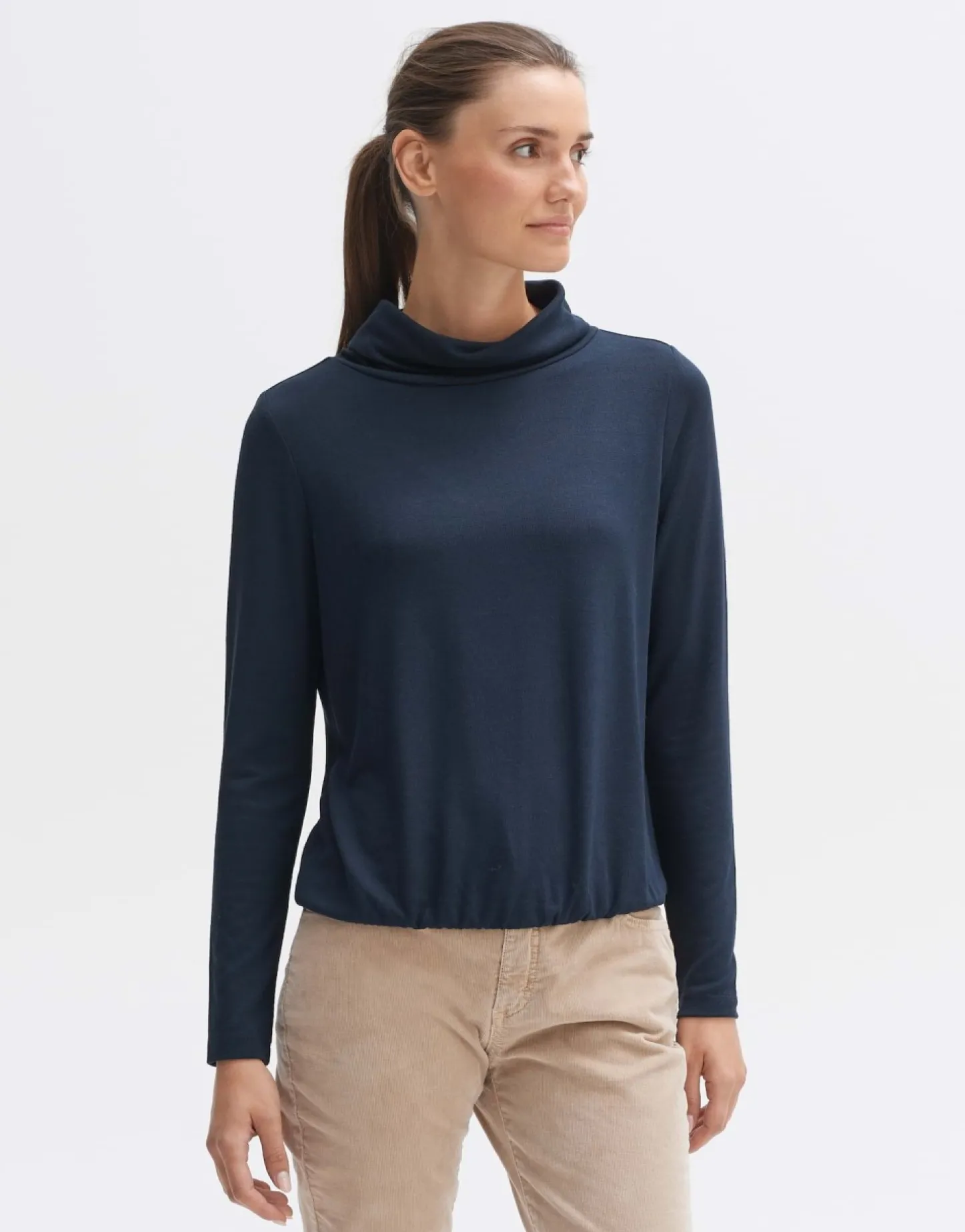 Het Shirt Met Lange Mouwen Is Gemaakt Van Een Hoogwaardige Ecovero™ Viscosemix En Heeft Een Grote Col Buiten De Hals En Een Elastische Zoom. Hierdoor Heeft Het Shirt Een Volumineuze Bovenkant En Een Supercomfortabele Pasvorm.
