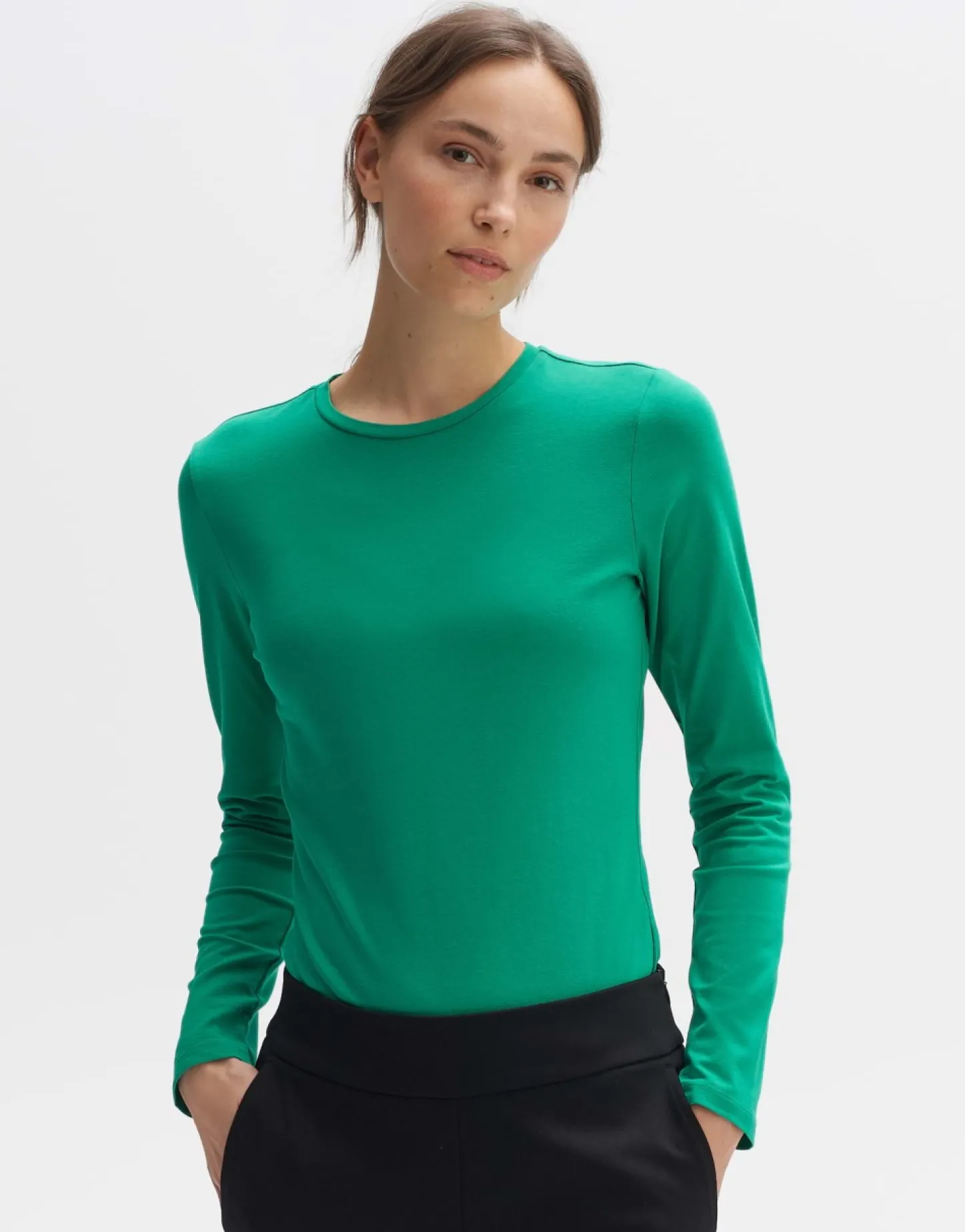 Het Shirt Met Lange Mouwen Van Een Aangename Bci-Katoenmix Met Een Ronde Hals Is Het Perfecte Basisshirt. Dankzij Het Elastaangehalte Omarmt Het Shirt Met Lange Mouwen Niet Alleen Het Lichaam Voor Warmte, Maar Behoudt Het Ook Permanent Zijn Slanke V…