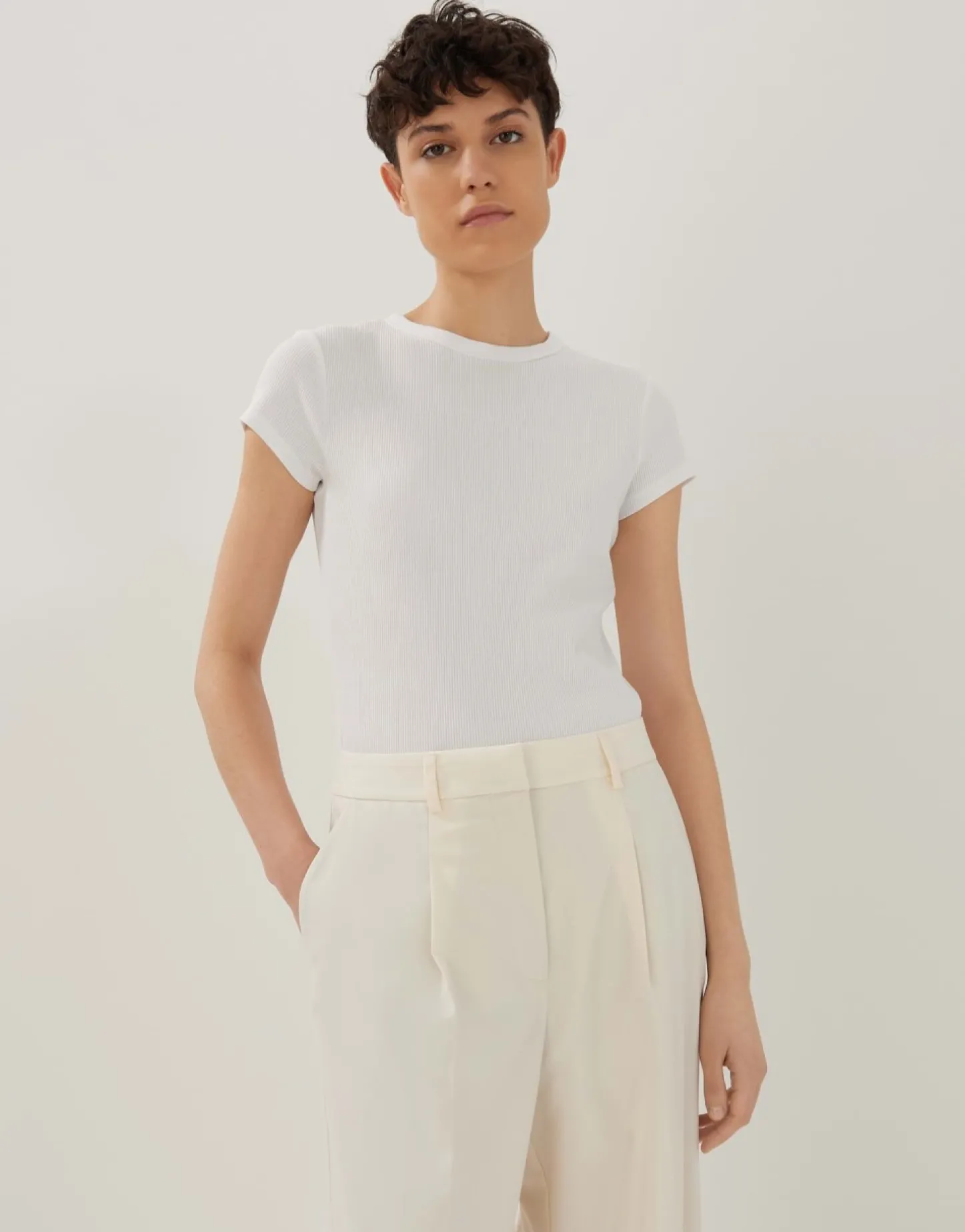 Het Shirt Van Bci-Katoenmix Overtuigt Met Een Eenvoudige Look En Fijne Ribboorden. De Aansluitende Vorm Zorgt Voor Een Vrouwelijke Look.