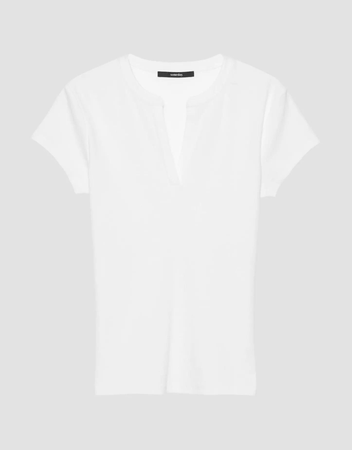 Gemaakt Van Een Hoogwaardige Bci-Katoenmix, Is Dit Overhemd Voorzien Van Een Fijne Rib Met Sterk Herstel. De Slanke Pasvorm En De Kleine V-Hals Zijn Bijzonder Flatterend.